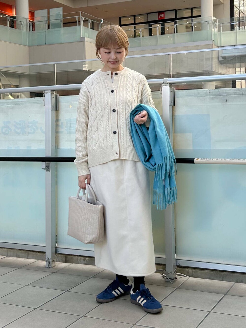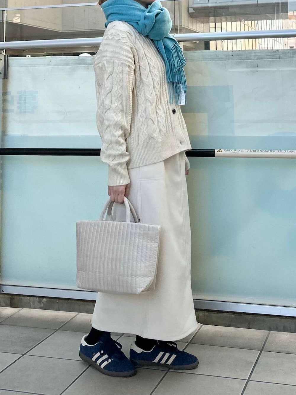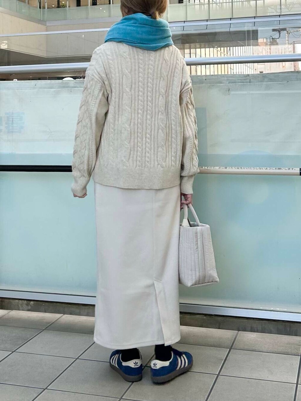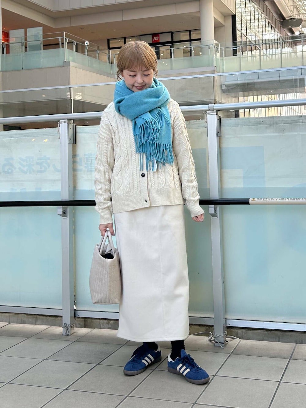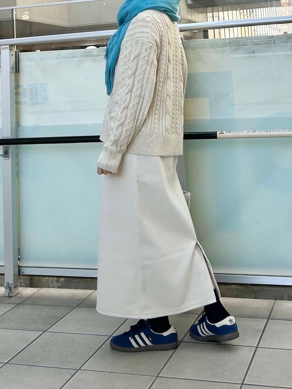 差し色にマフラーで青をいれました。
