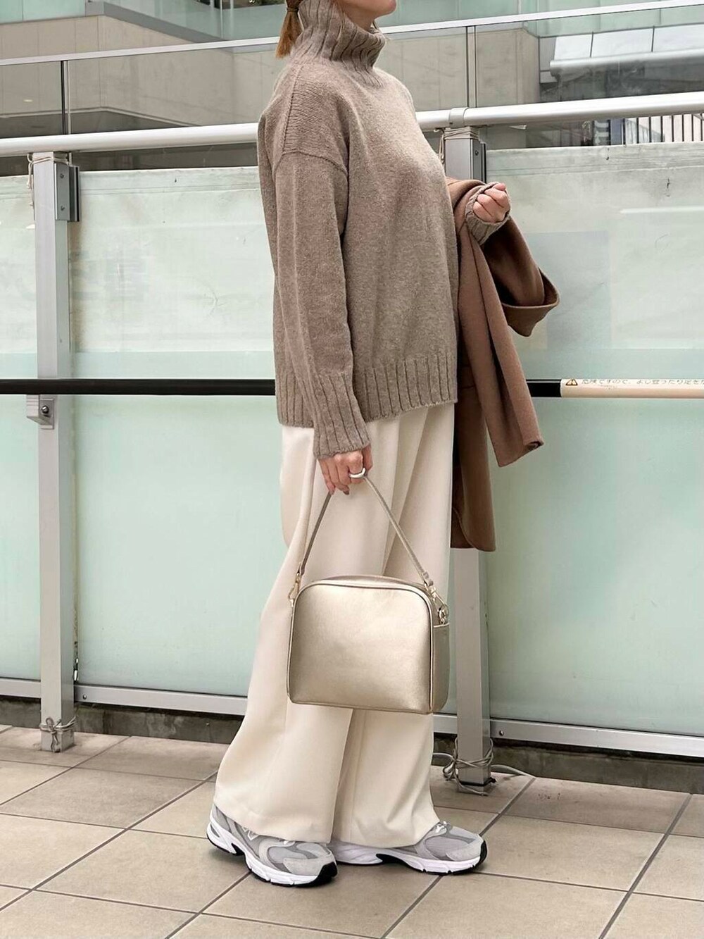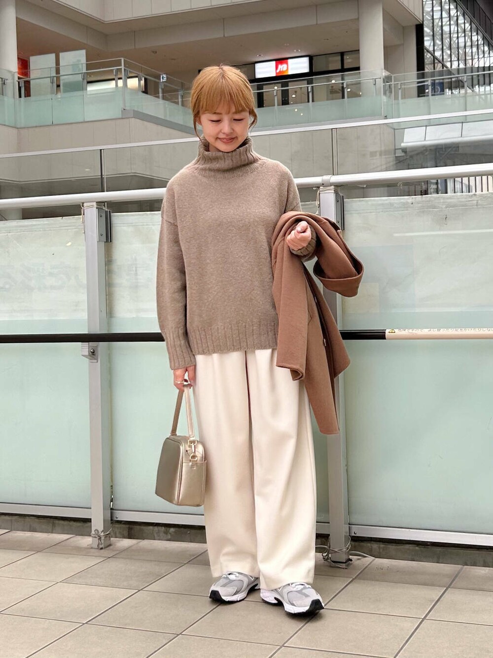 アウターは首まわりがスッキリしているのでタートルネックとの相性がいいです。
