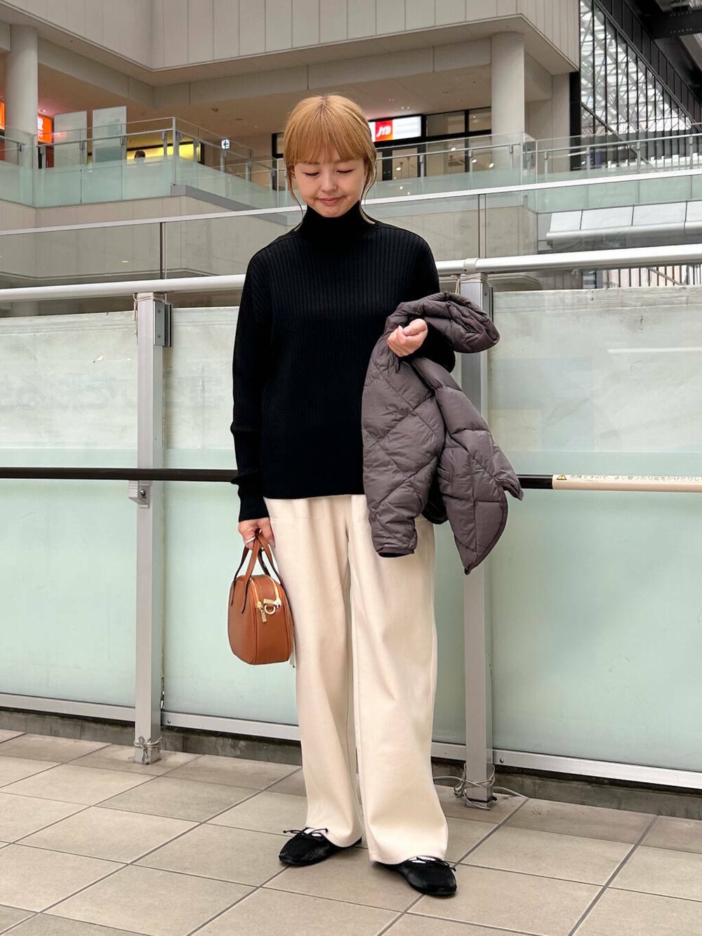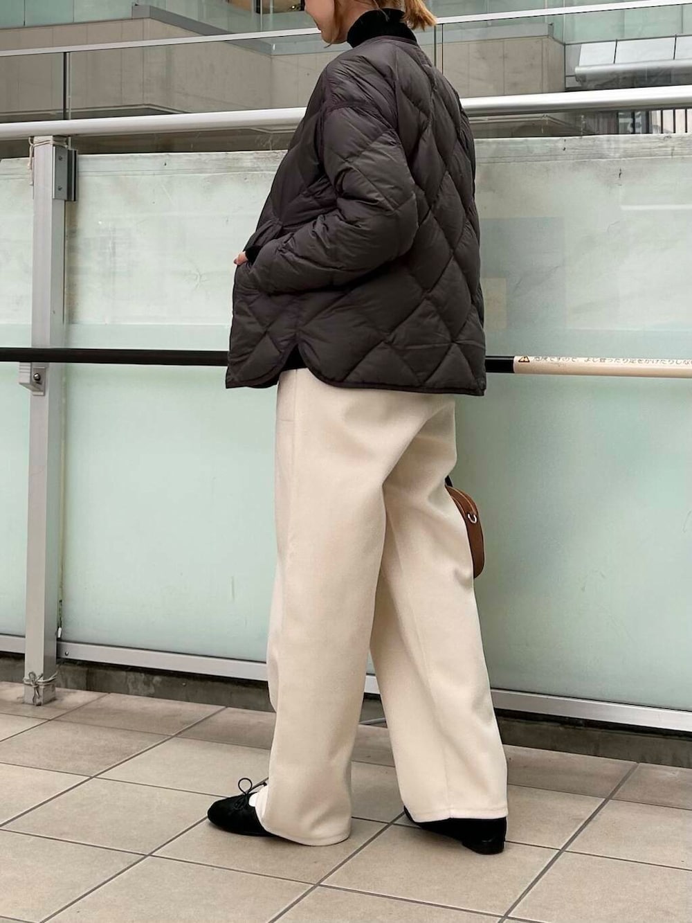 ボトムは暖かい素材のイージーパンツを合わせました。