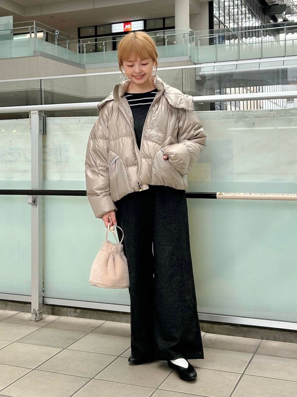 野尻さんとのコラボのナンガのダウンを主役にしたコーディネートです。