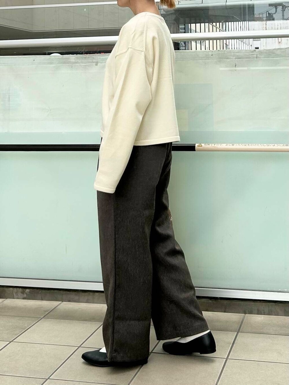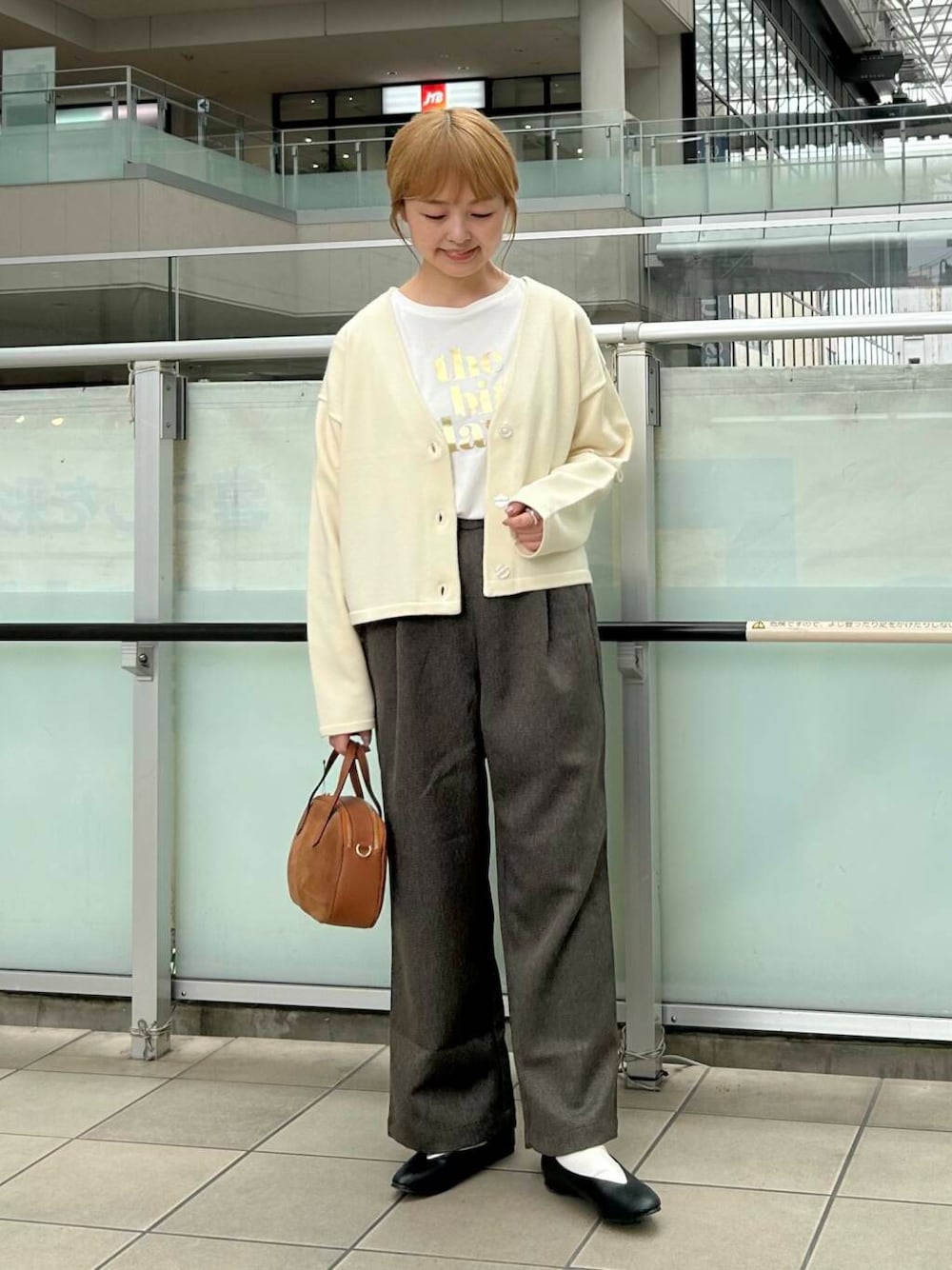 短めのスッキリとした丈感でバランスよく合わせられます。