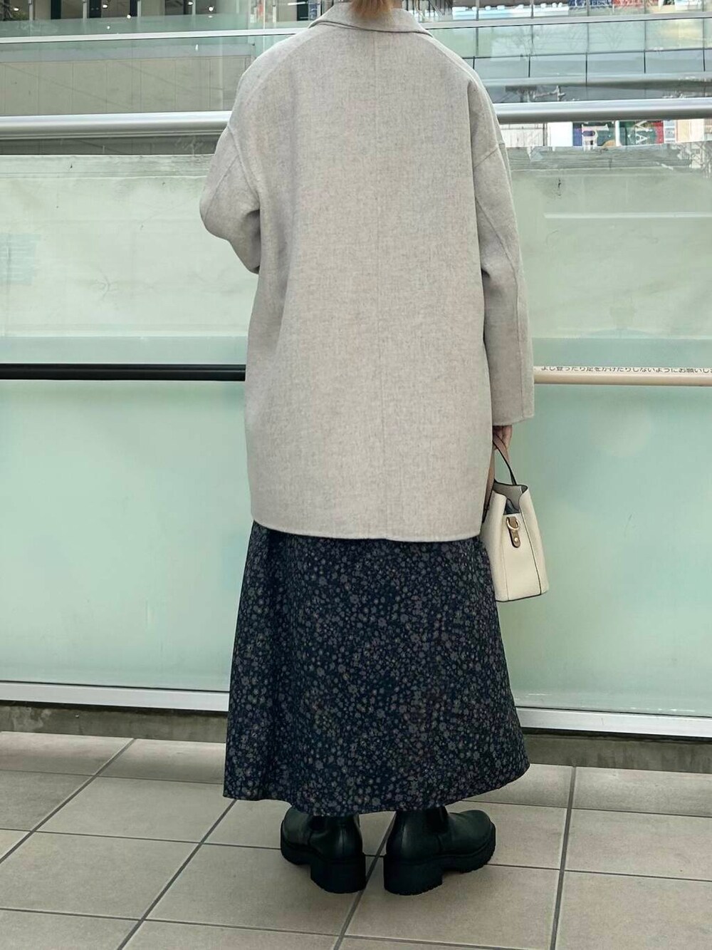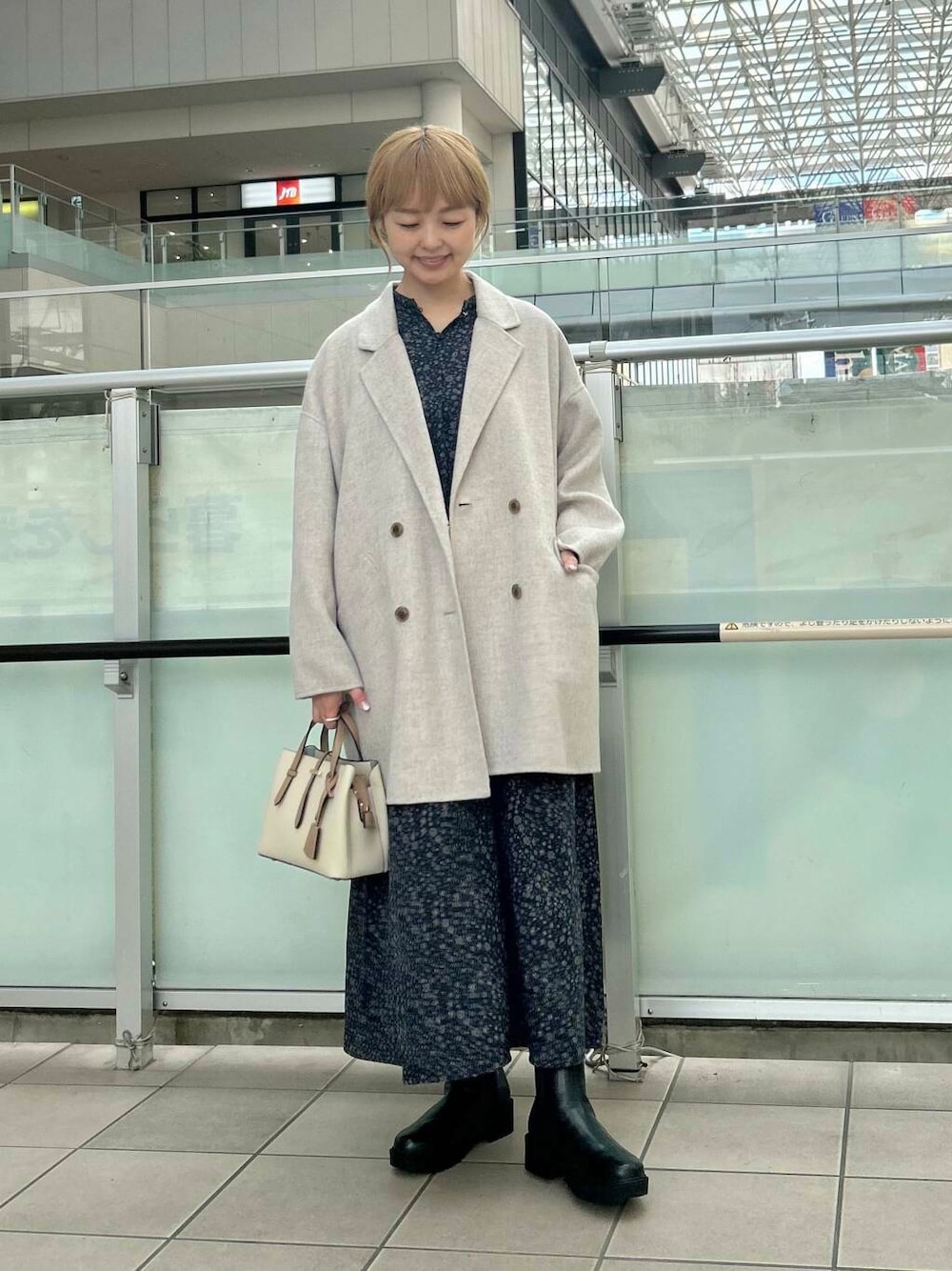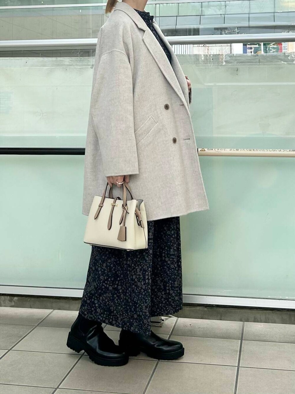 ジャケットのようなデザインのコートを羽織りました。ミドル丈でスッキリとしています。