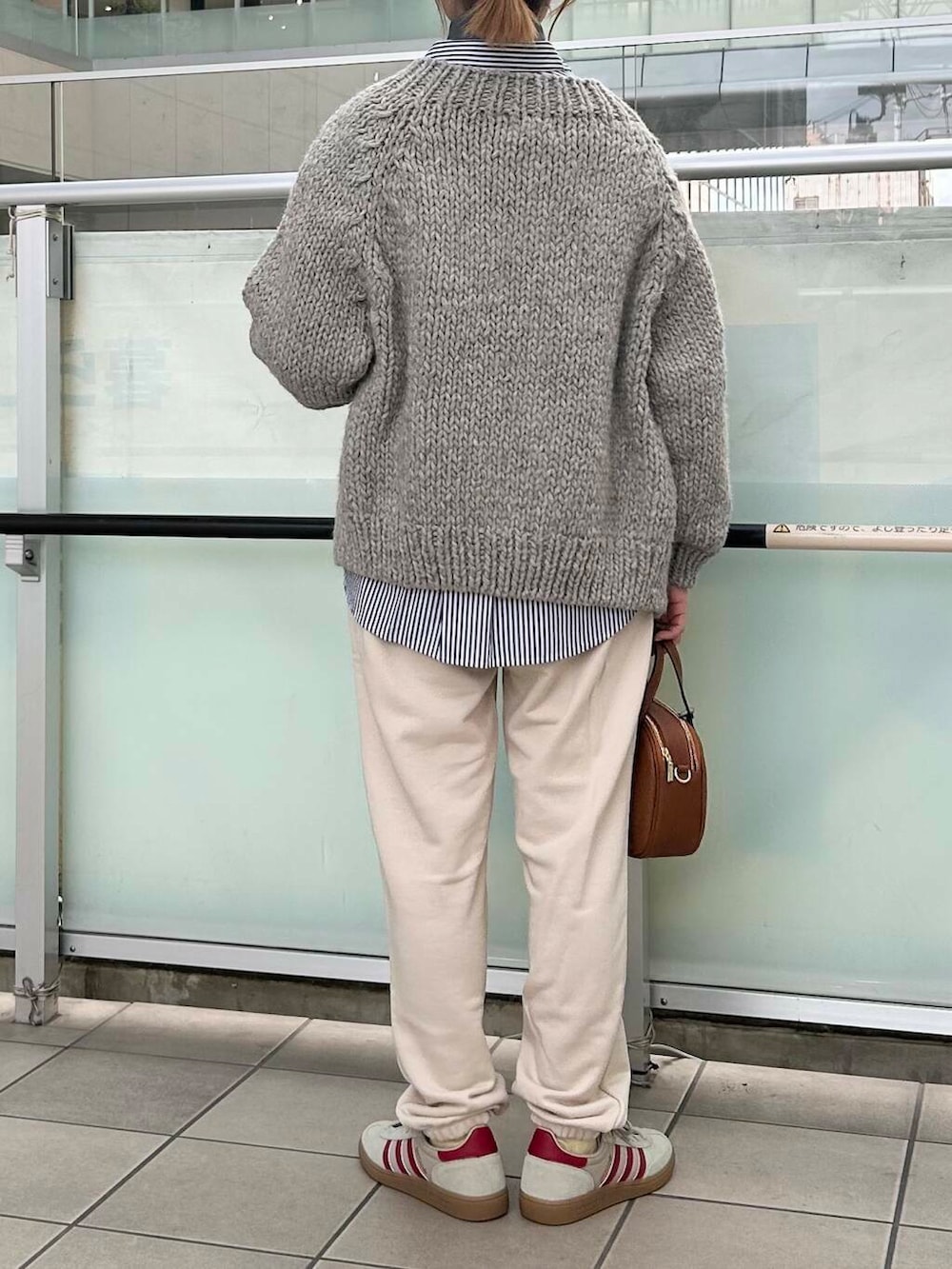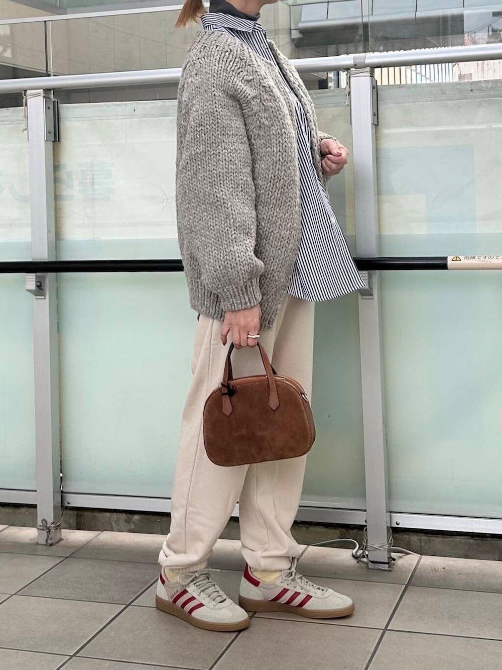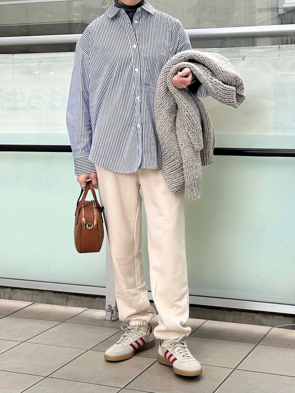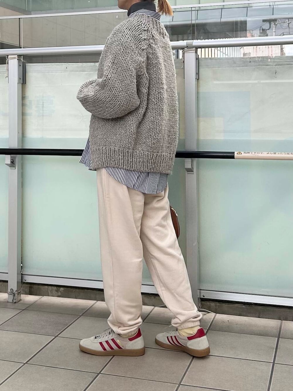 ボトムは楽にスウェットパンツを合わせました。アイボリーは合わせやすくかわいいお色です。