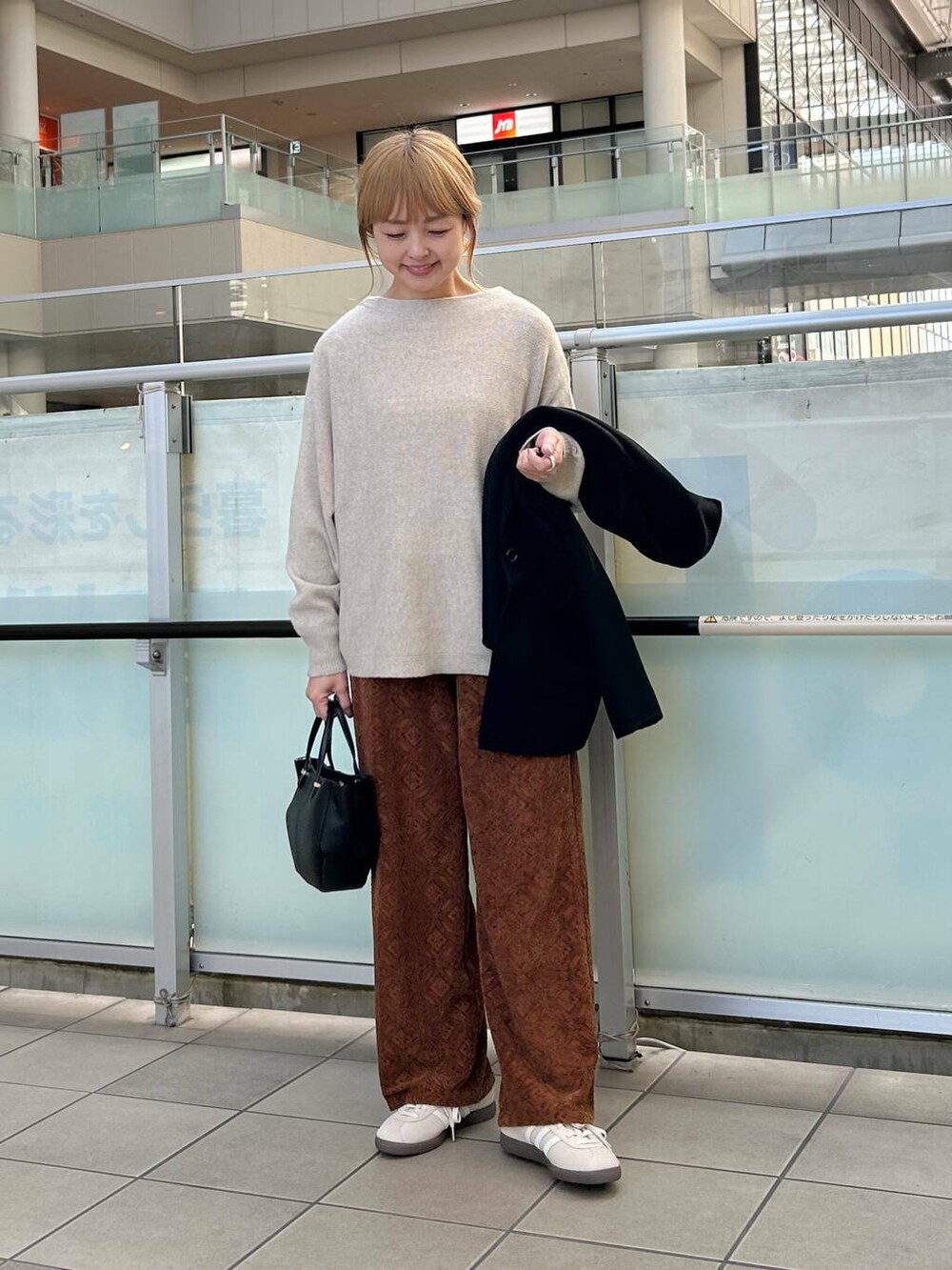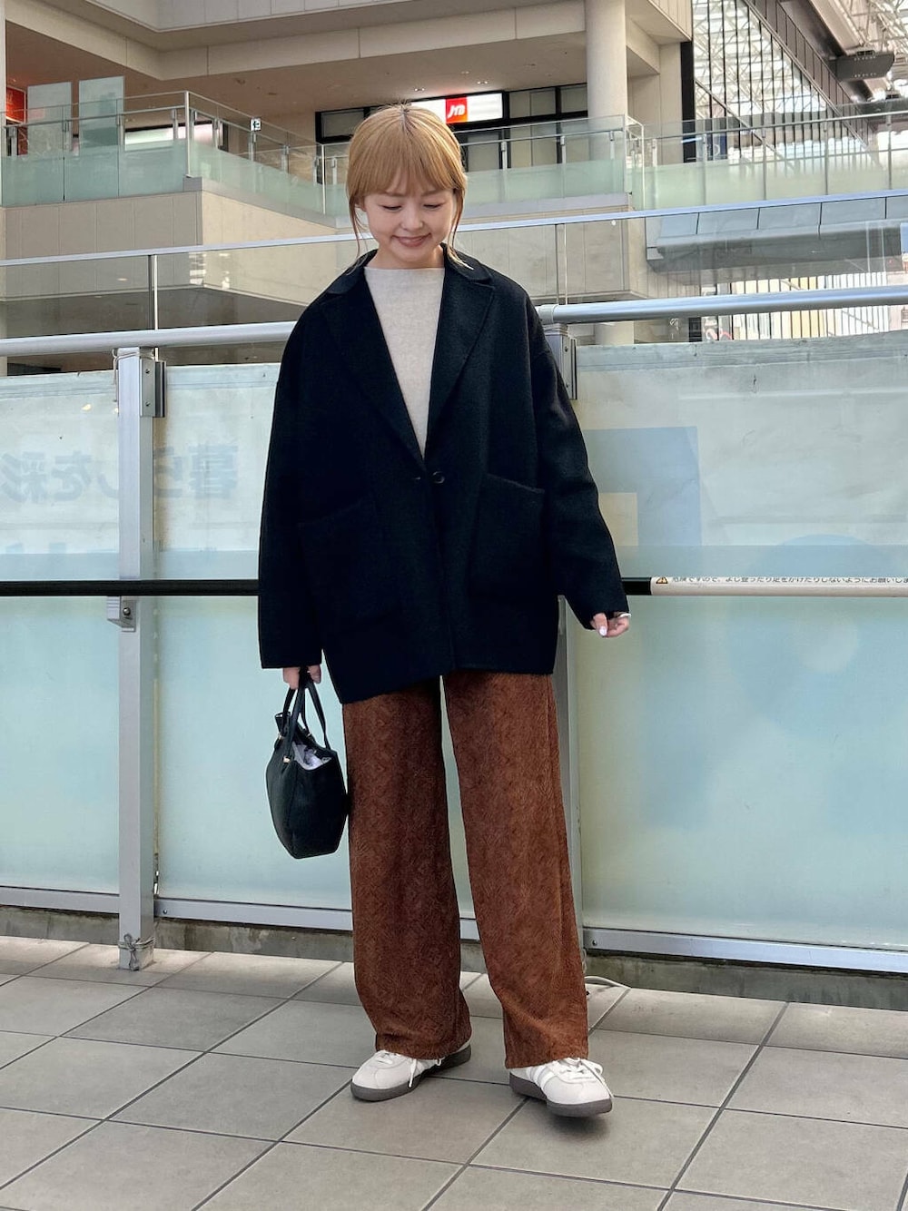 ほどよくゆとりがあって下に厚手のニットも重ねやすいアウターです。