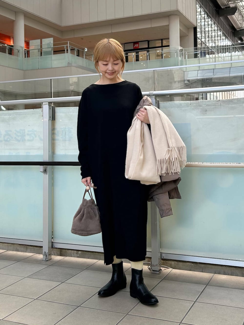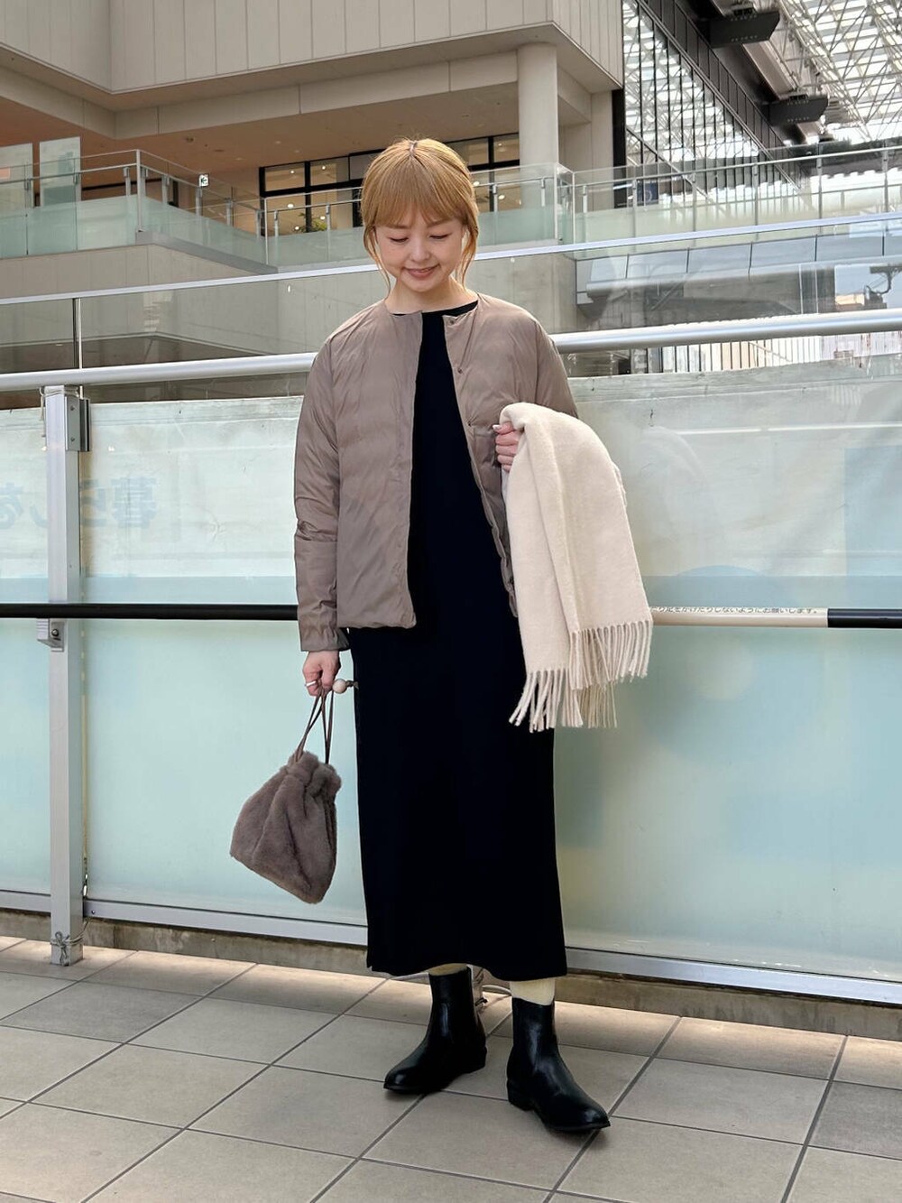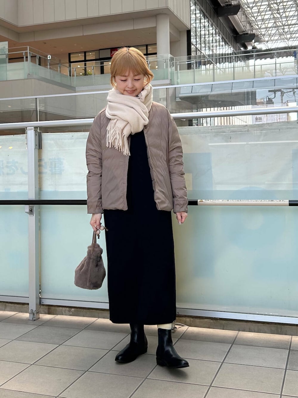 ボリューム感のあるマフラーを合わせました。