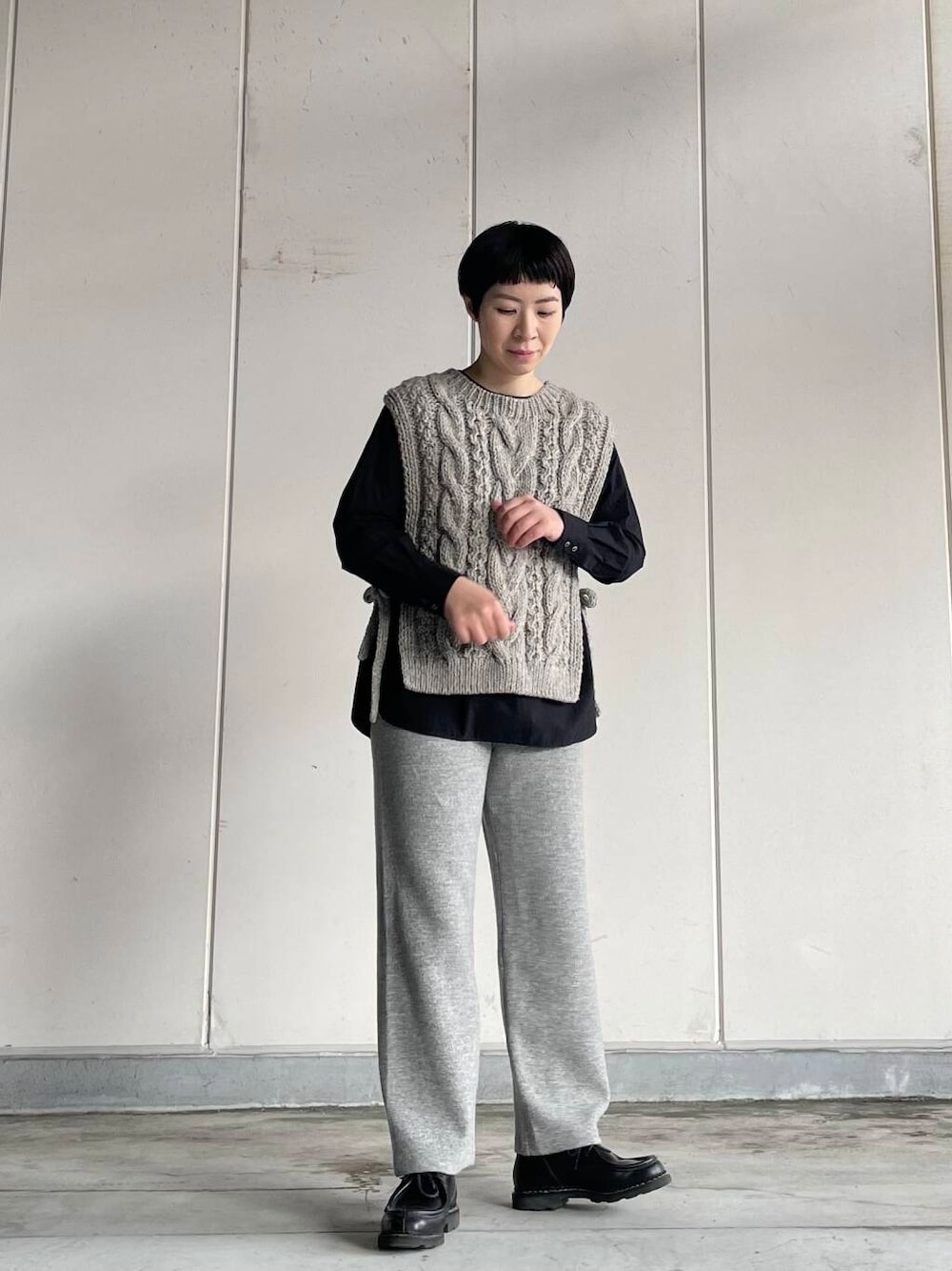 今回はブラウスとニットとあわせて、大人のカジュアルスタイルです。