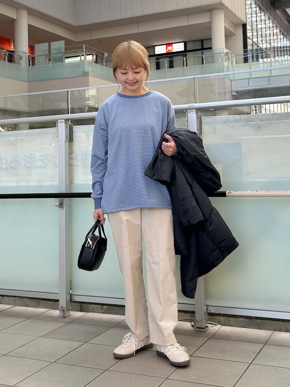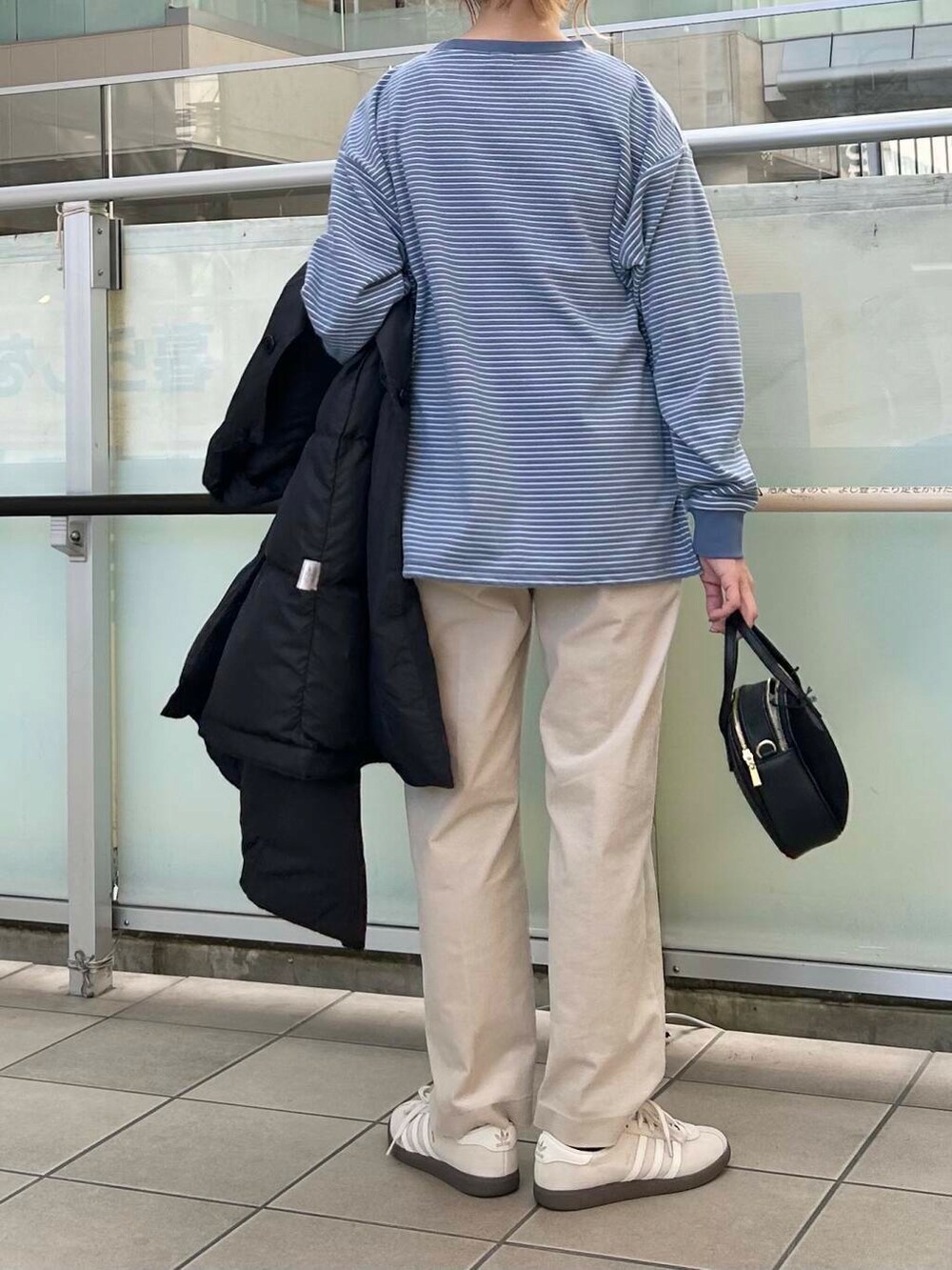 アウターが暖かいので中はニットを着ずに起毛カットソーを合わせました。