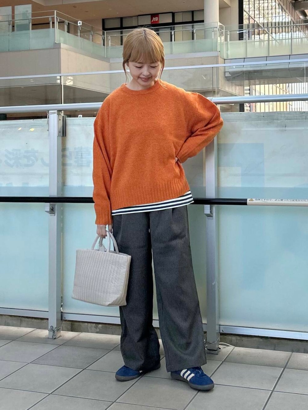 明るいカラーもニットなら少し落ち着いて見えてお手持ちのお洋服とも合わせやすいと思います。