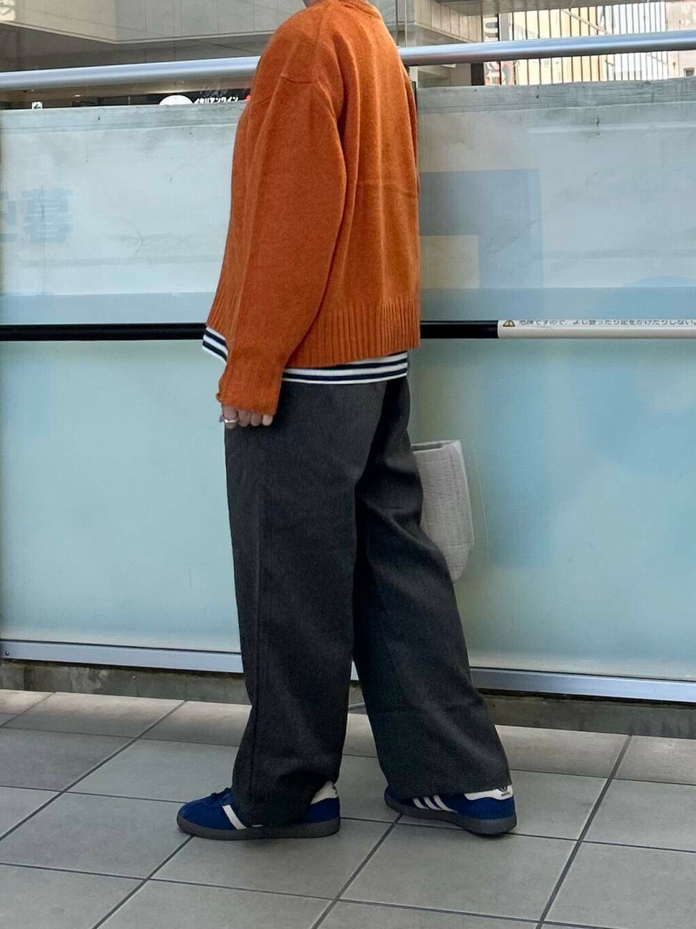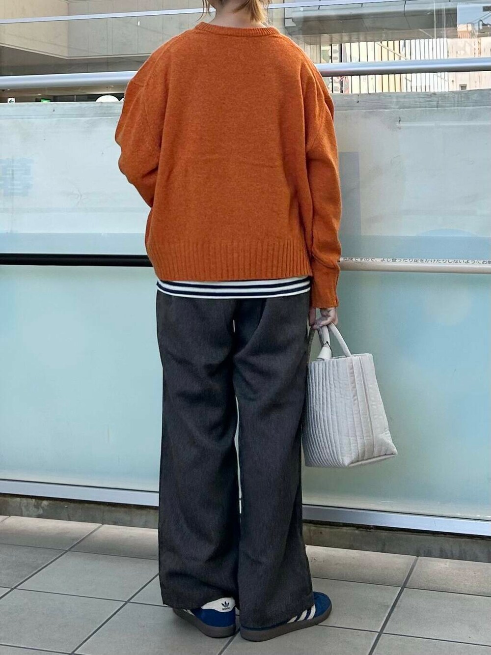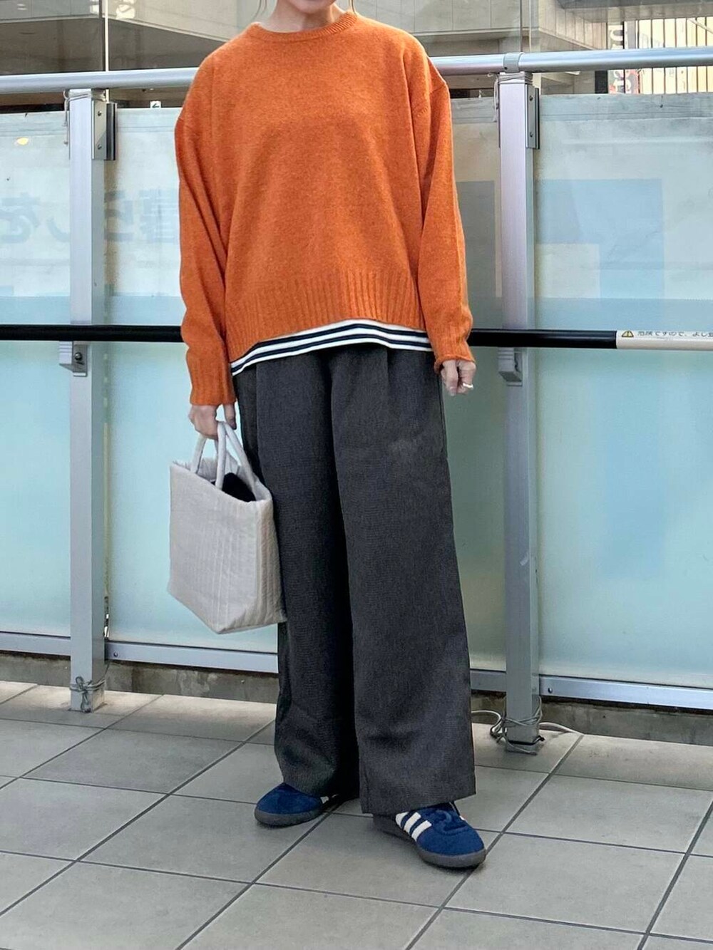 ゆったりしていて下にタイツなども重ねやすいです。見た目にも暖かそうな季節感のあるパンツです。