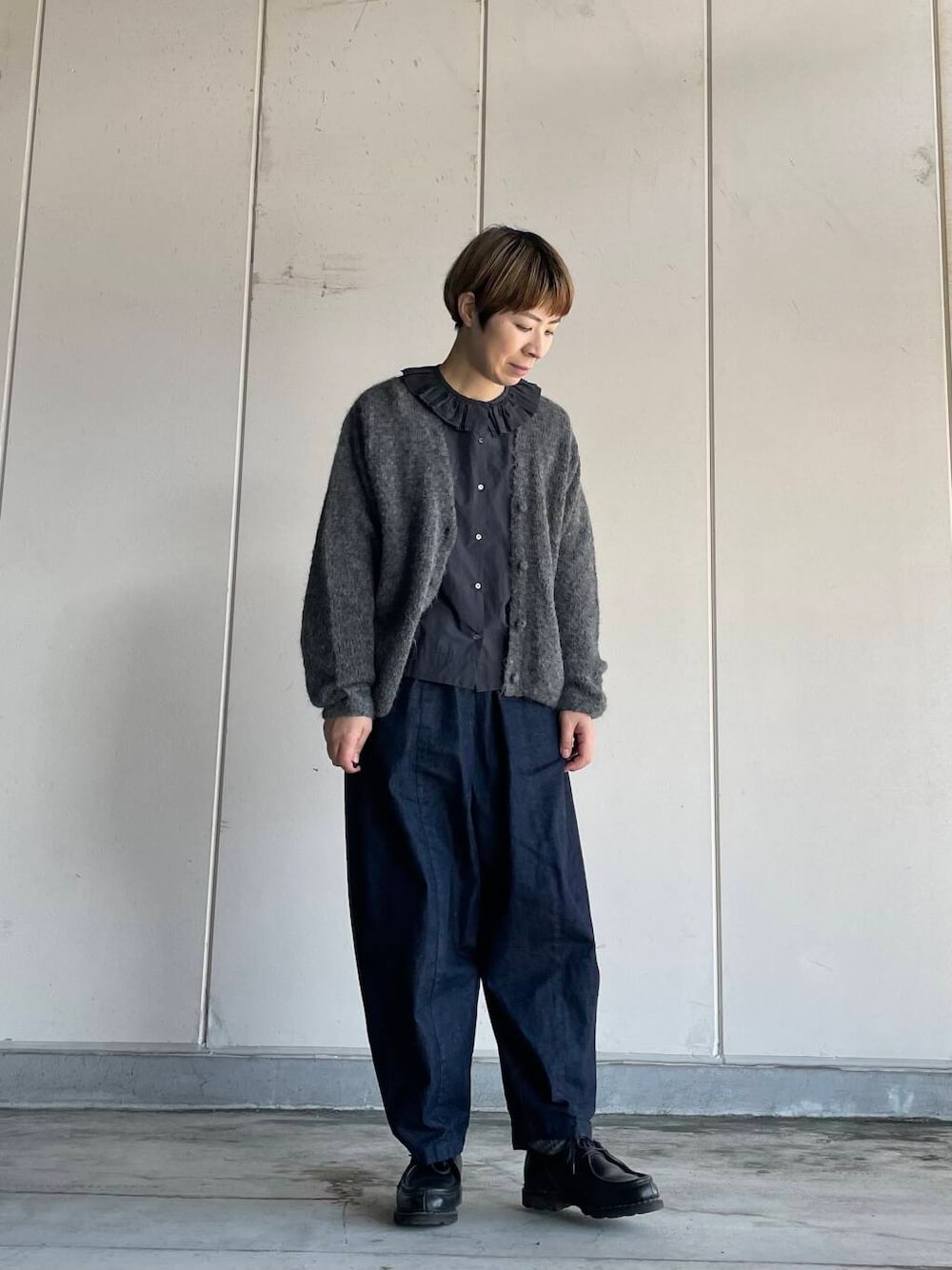 デニムなどカジュアルなパンツあわせが、バランスを取りやすいです!