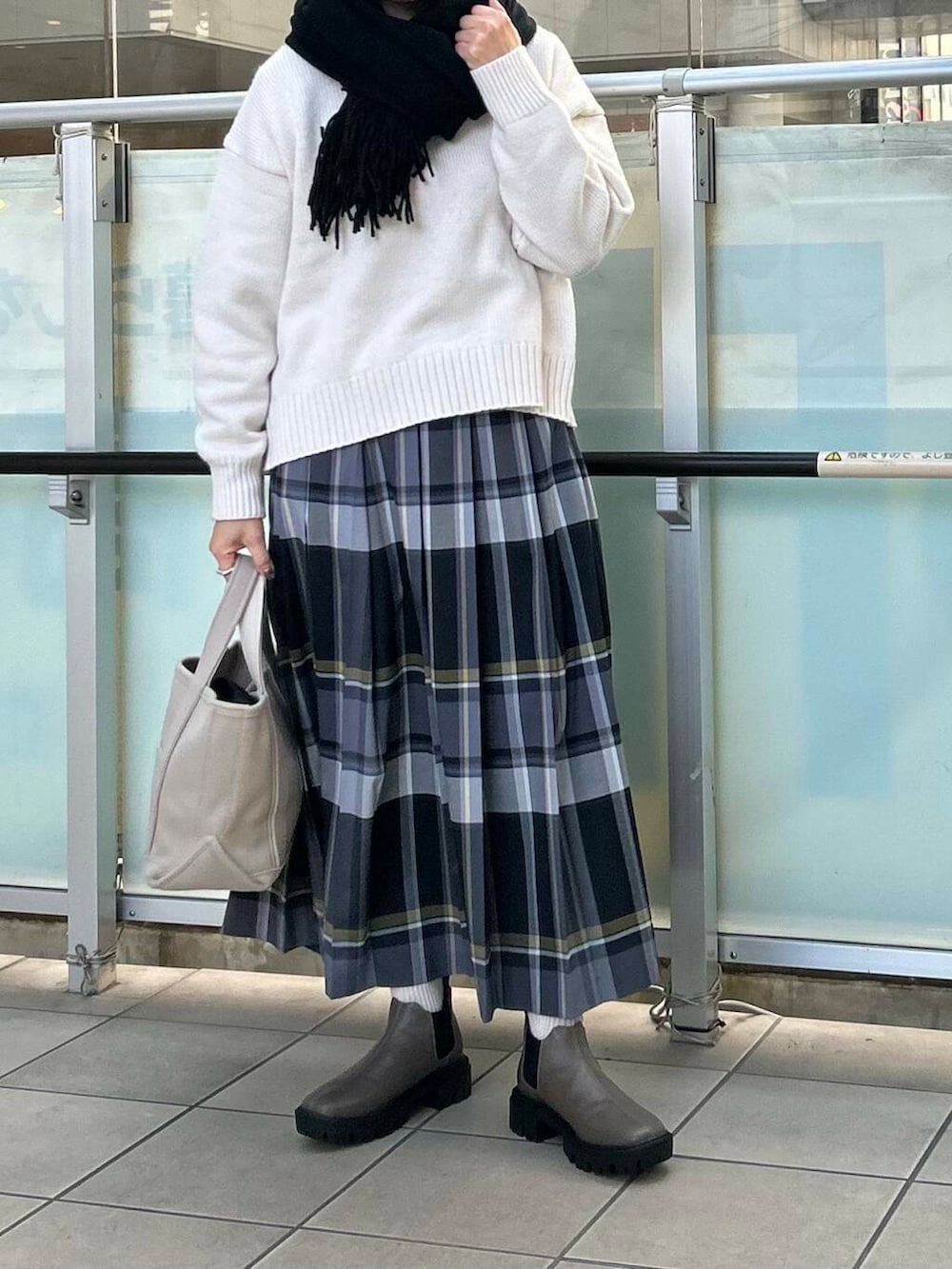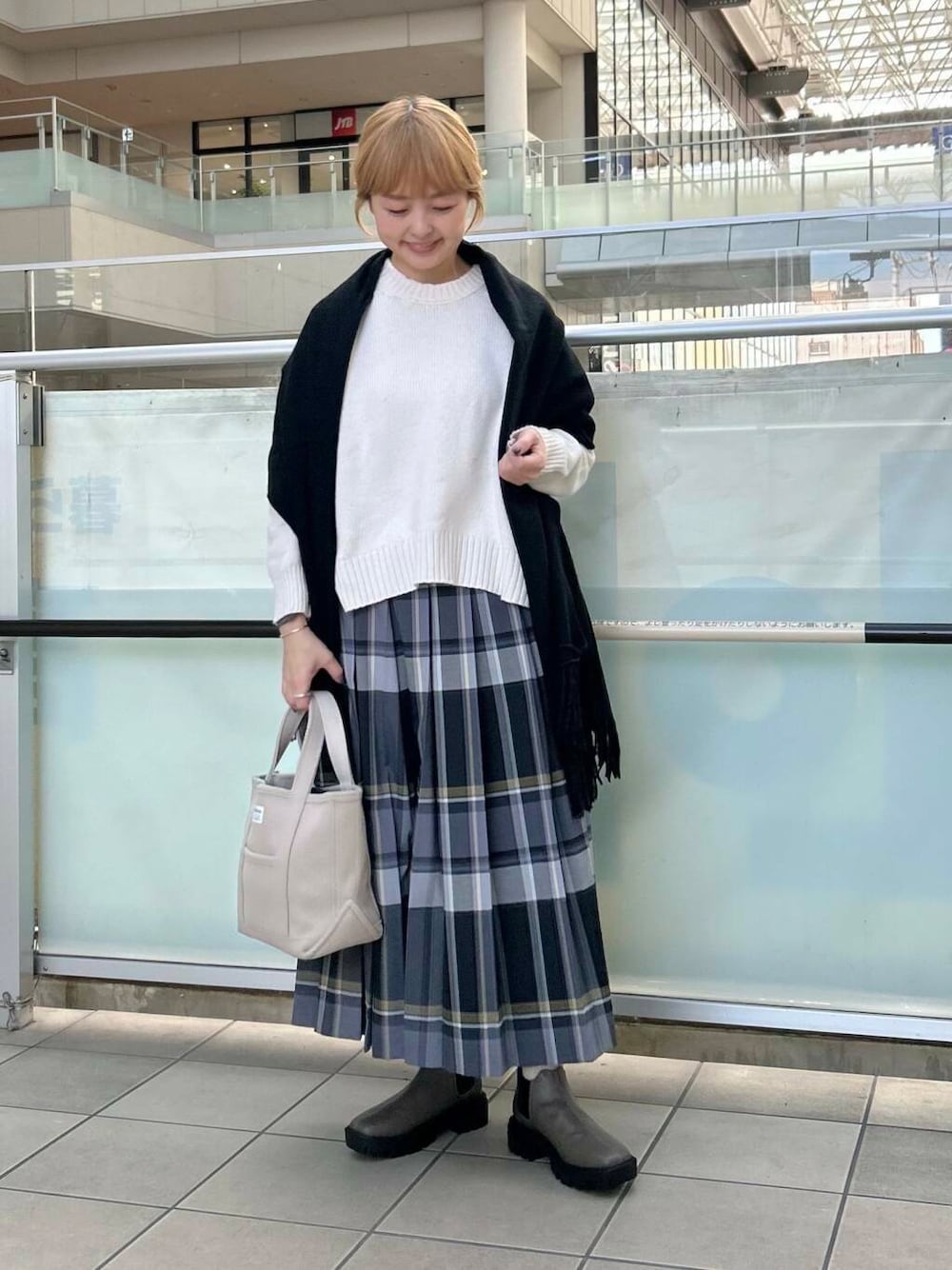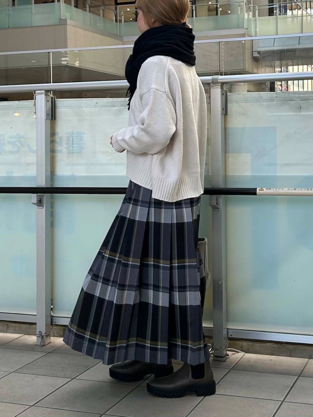チェックのプリーツスカートを合わせました。