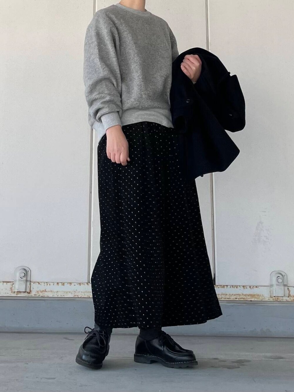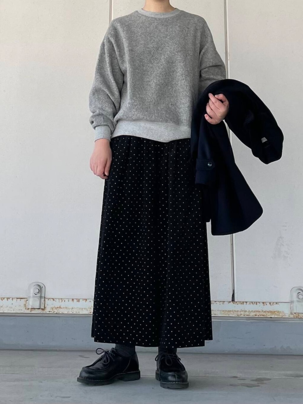 程よい厚みで着やすい素材なので、アウターも羽織りやすいです。