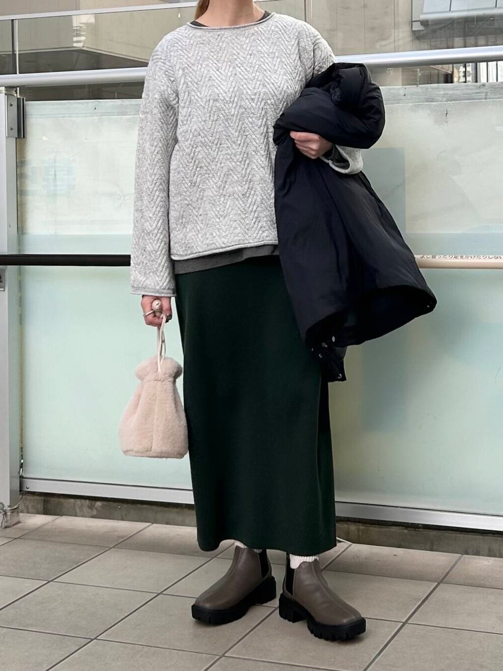 タイトなシルエットでカジュアルなアイテムも大人っぽくまとめてくれます。