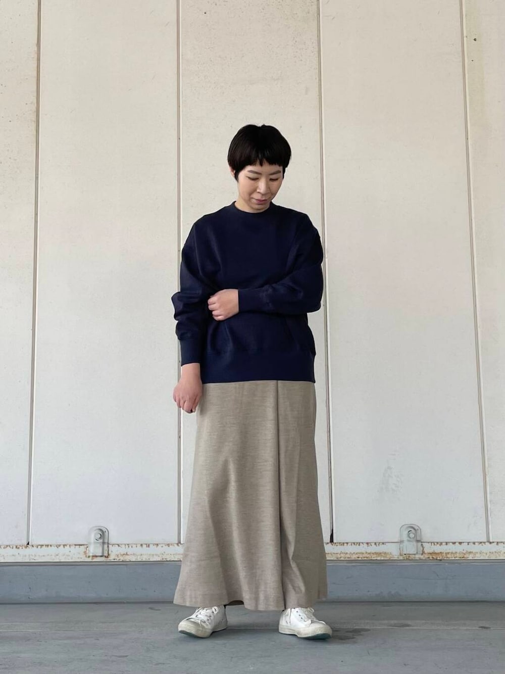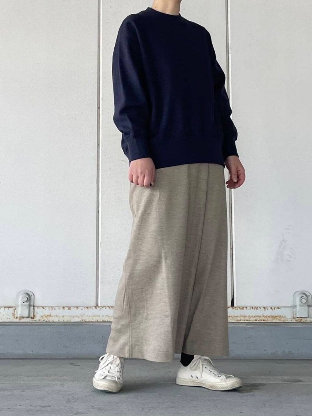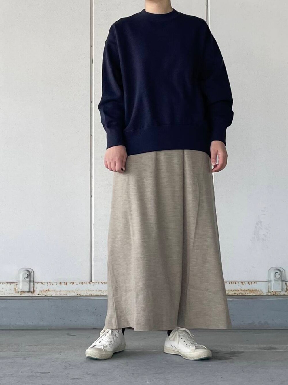 これからの季節には、ニットやスウェットなどボリュームのあるトップスと相性が良さそうです。
