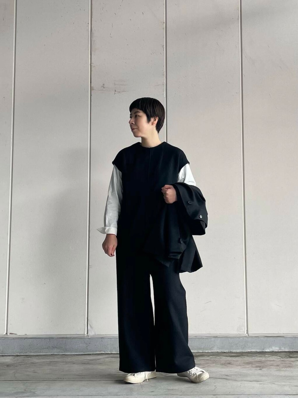 インナーにカットソーやタートルネック、ブラウスなどあわせていただけます。