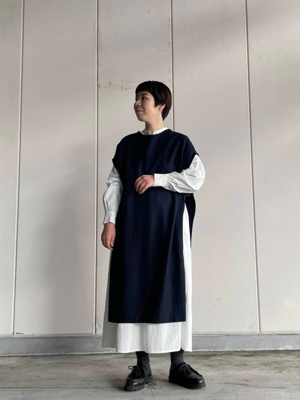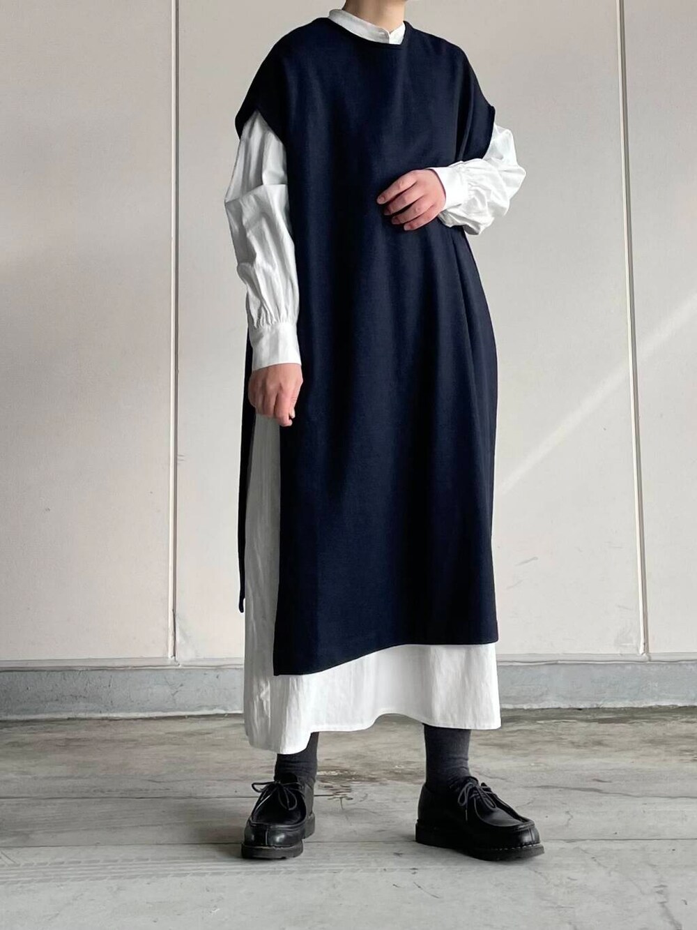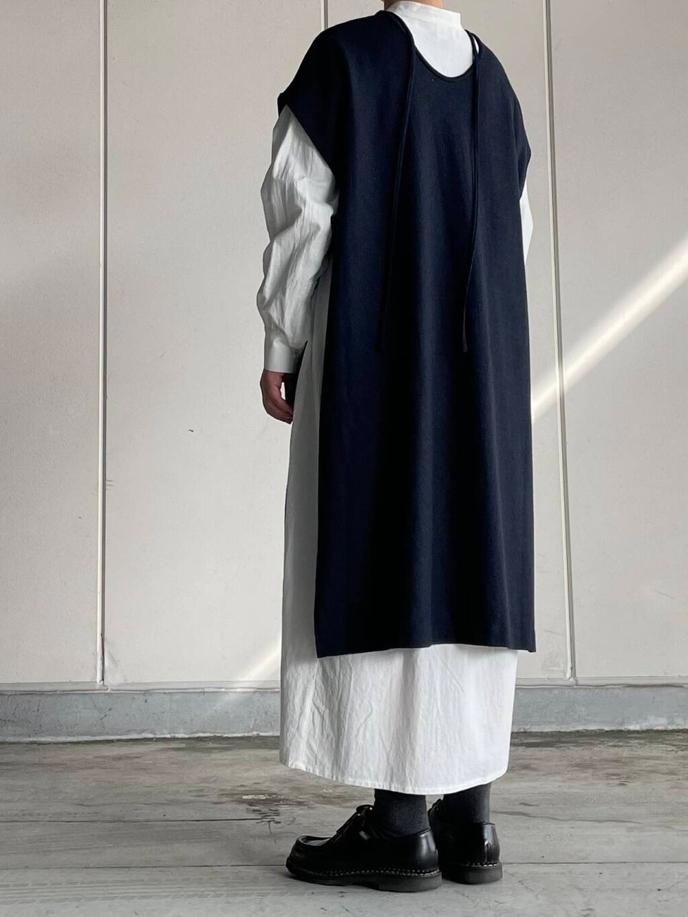 しっかり長さがあるロング丈ですので、ワンピースとのレイヤードスタイルもお楽しみいただけます◎