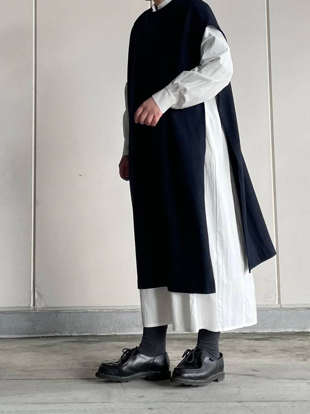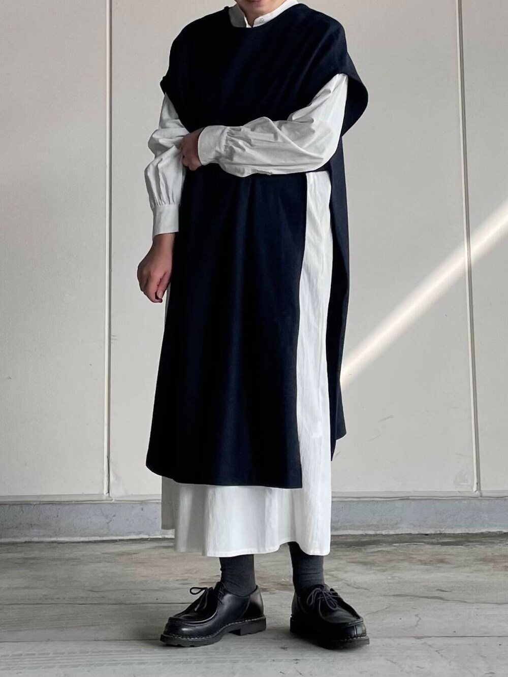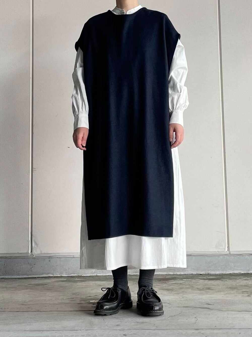 しっかり長さがあるロング丈ですので、ワンピースとのレイヤードスタイルもお楽しみいただけます◎