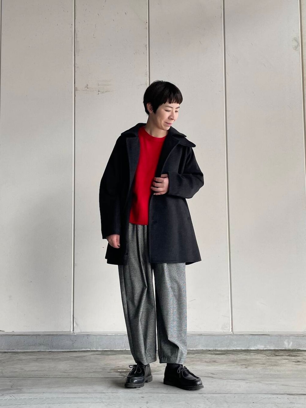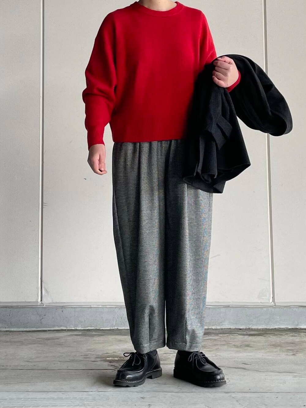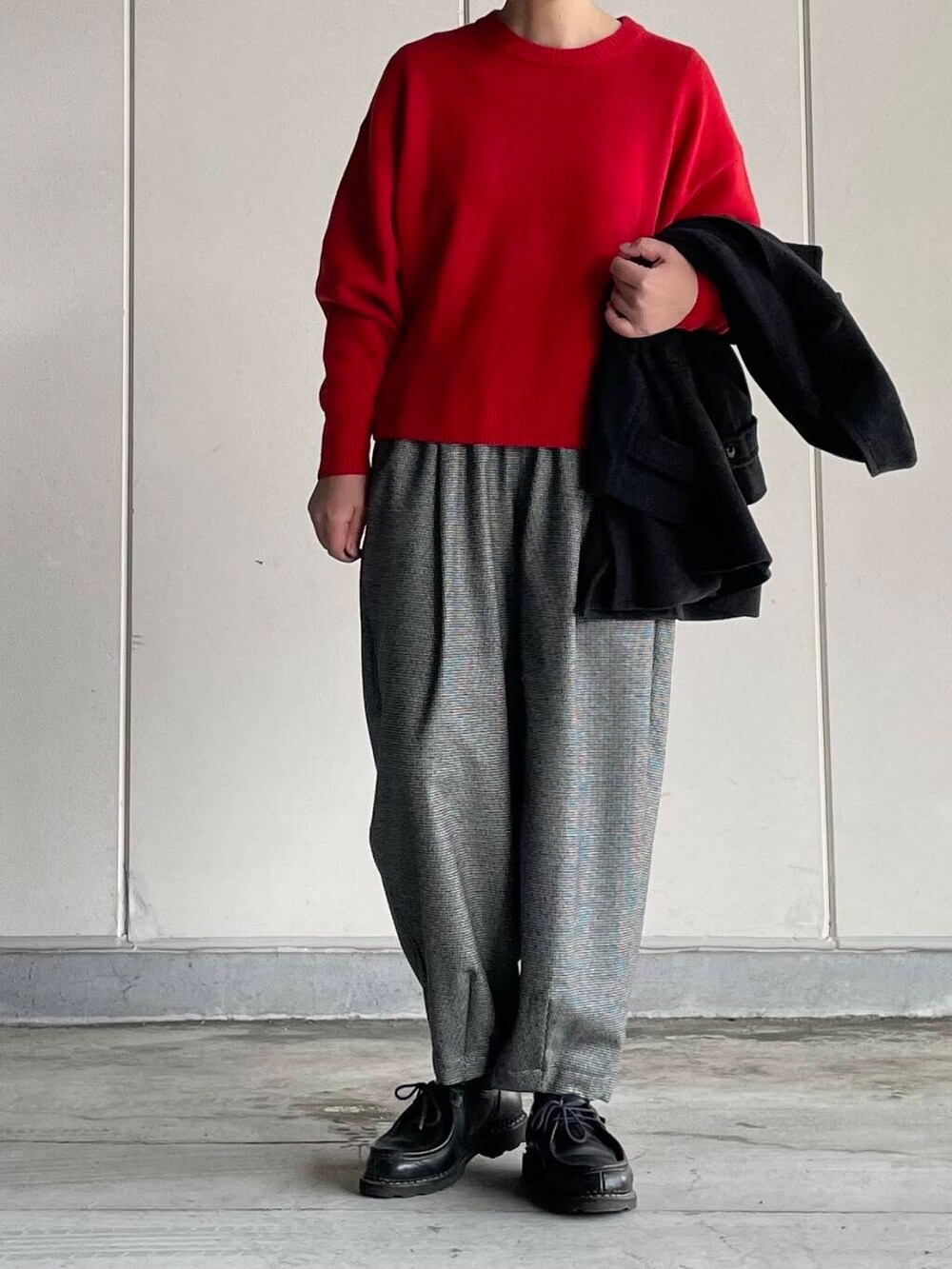 今回は赤いニットをアクセントにクリスマスをイメージしたスタイリングです🎄