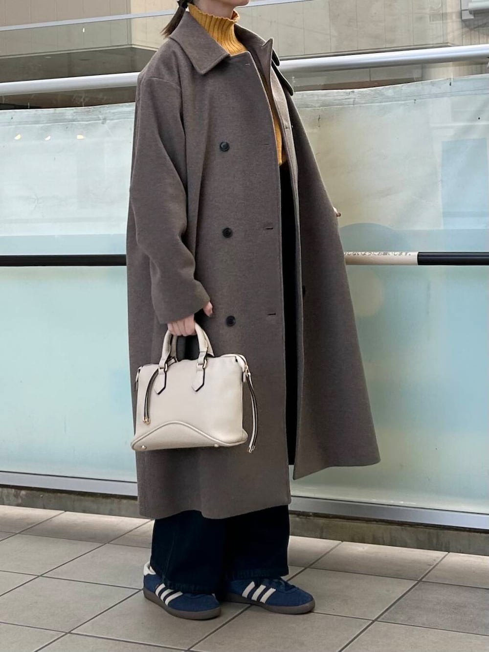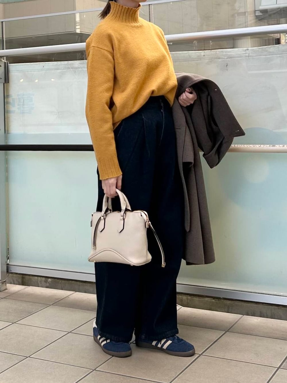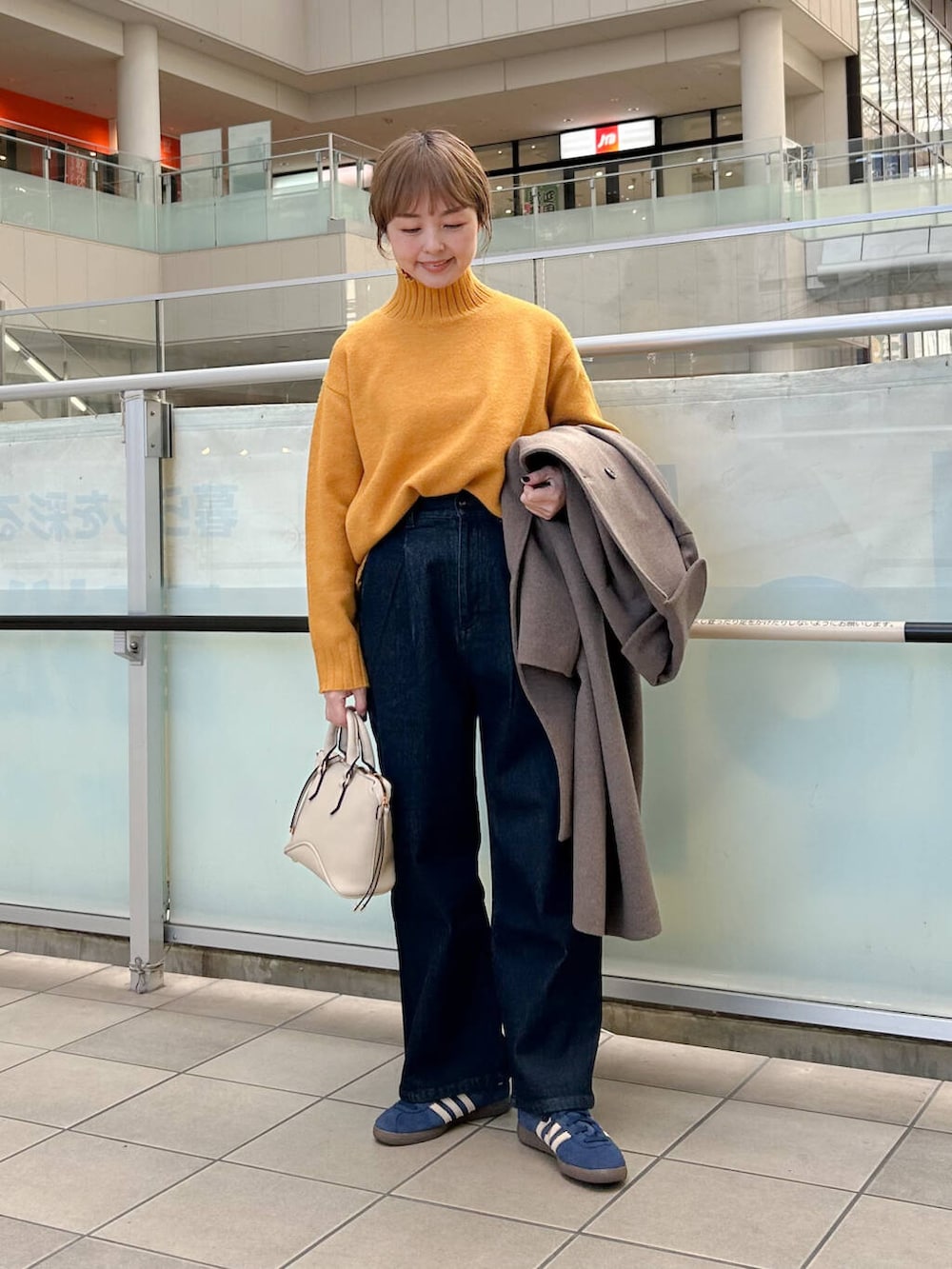 中はイエローのニットを合わせてコーディネートのポイントにしました。