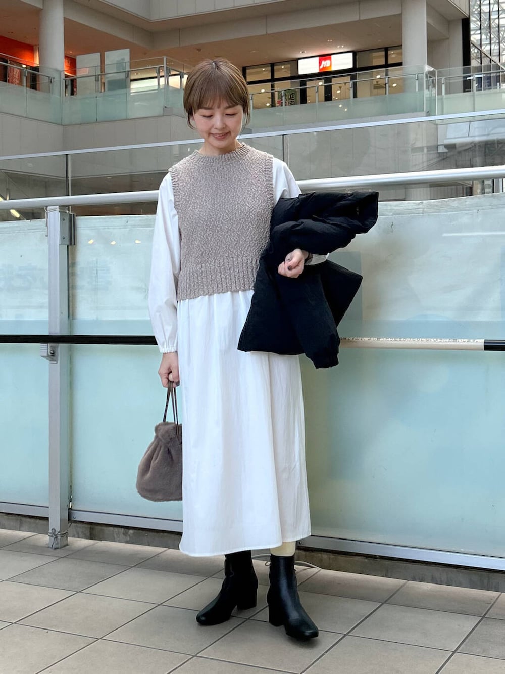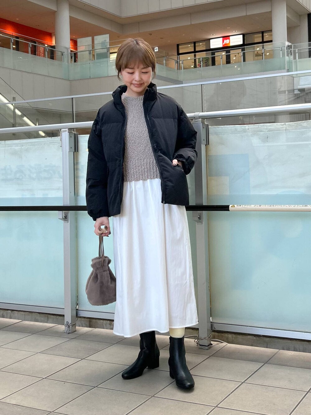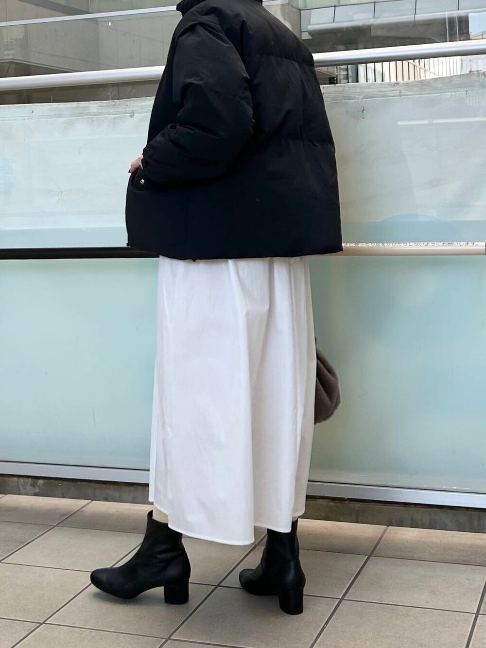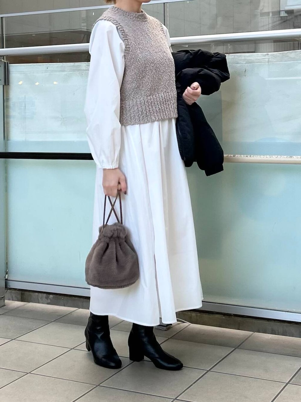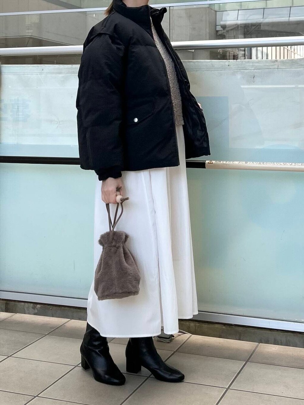 少し薄手なのでアウターは暖かいものを合わせました。