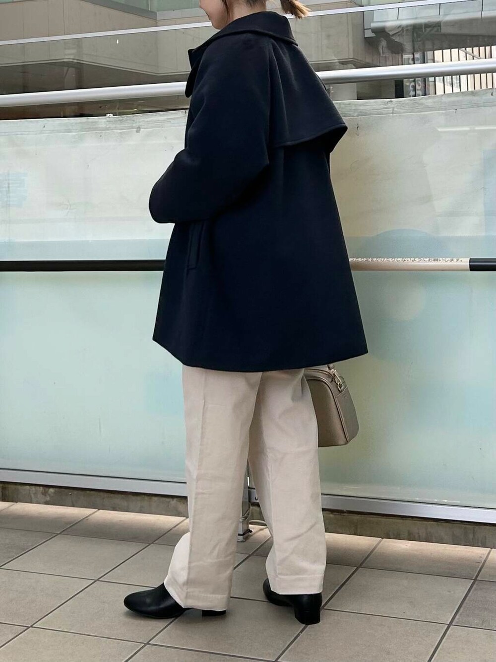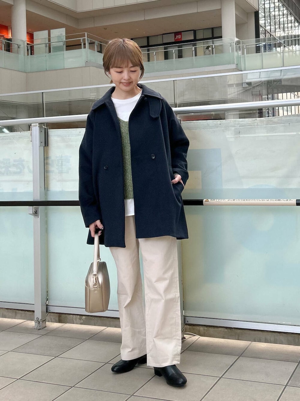 アウターは滑らかな肌触りがきもちのいいミドル丈のコートを合わせました。