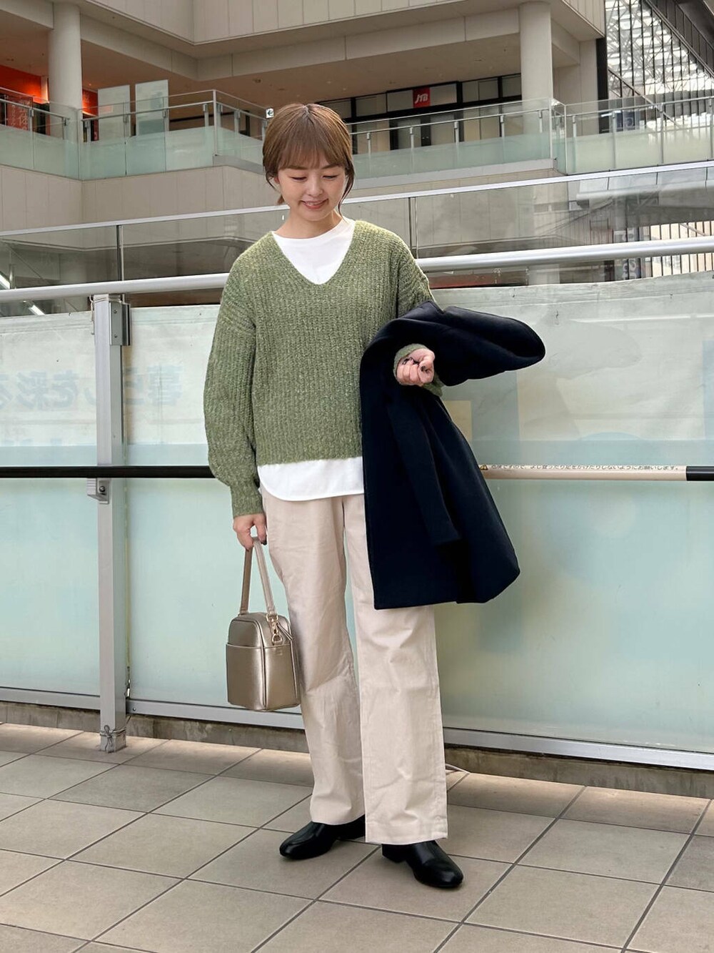 ゆったりとしているので厚手のニットも重ねやすいです。