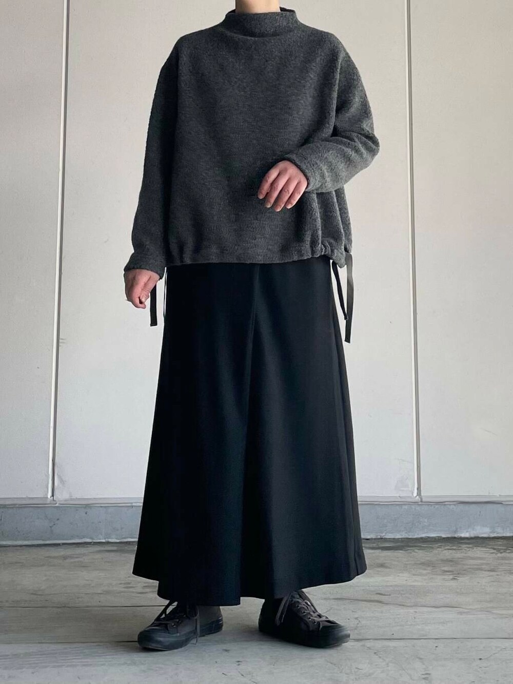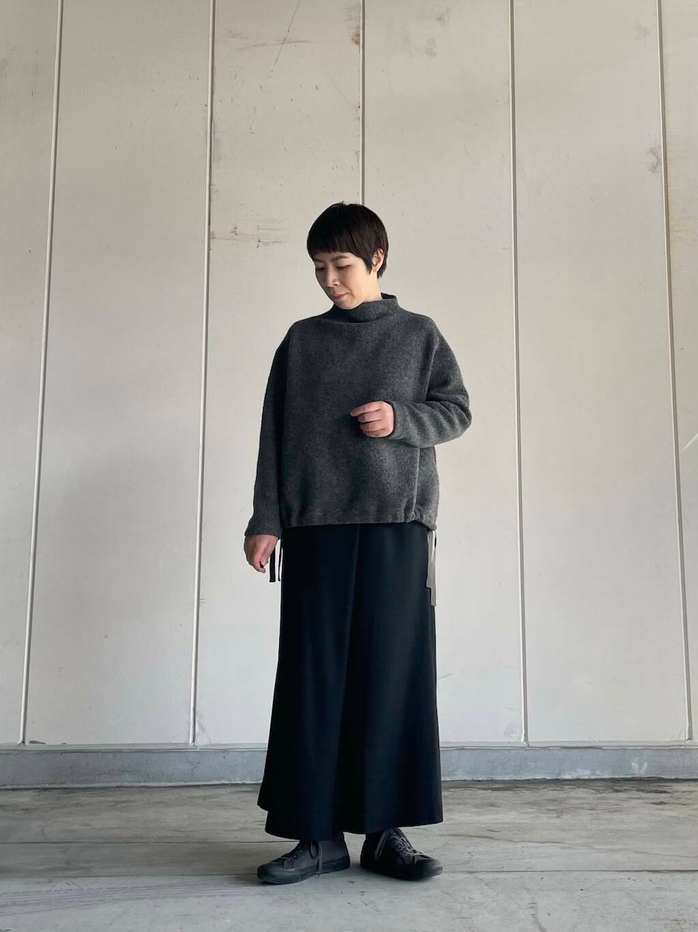 今回はロングスカートあわせで、裾を少し絞って大人のシンプルな装いに。