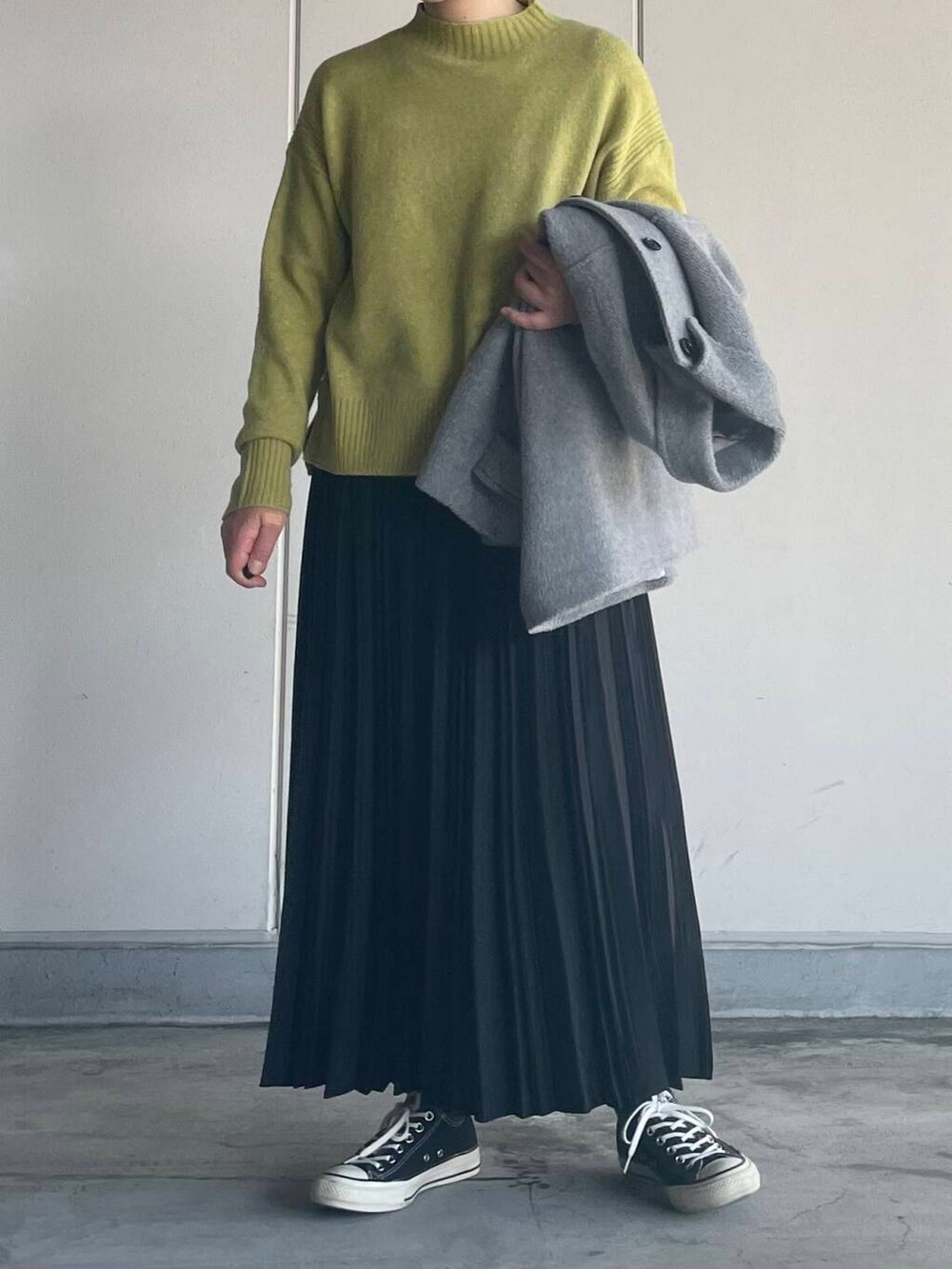 サイドスリットが入っているため、ロングスカートやワイドパンツともあわせやすいです。