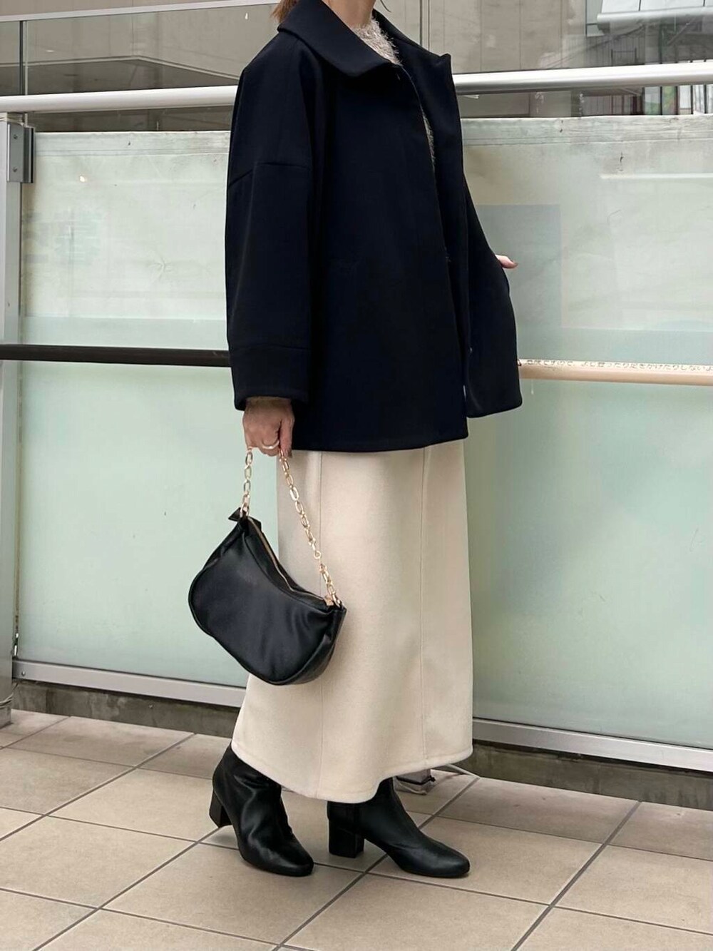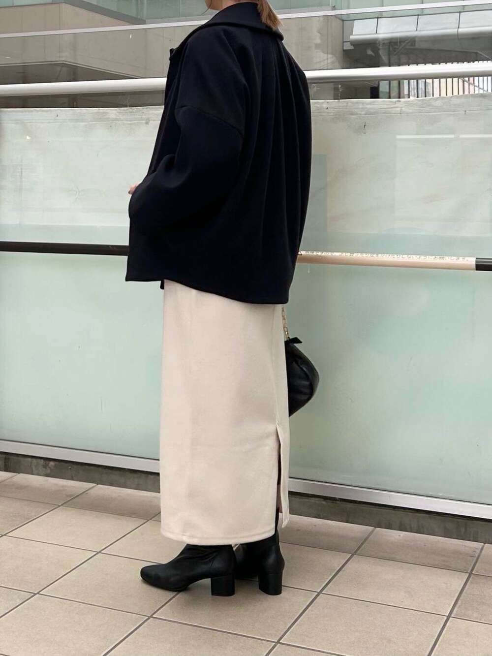 厚手なのでラインを拾わずスッキリと見えるタイトスカートです。