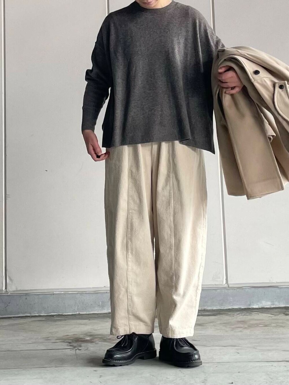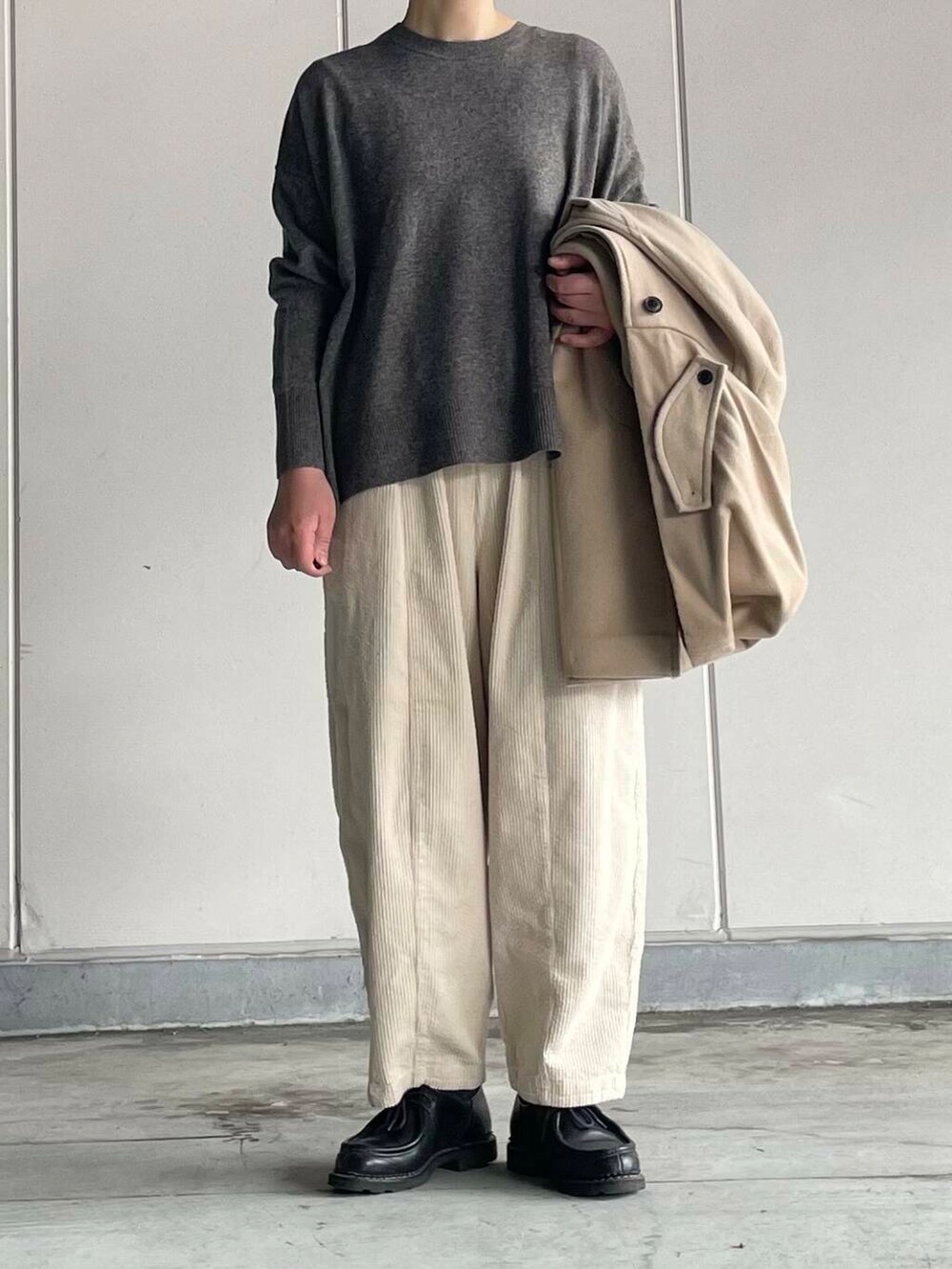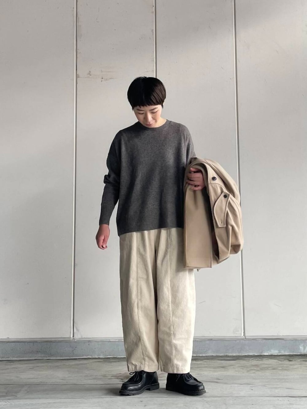 今回はボリュームパンツとあわせて、楽ちんお出かけスタイルに。