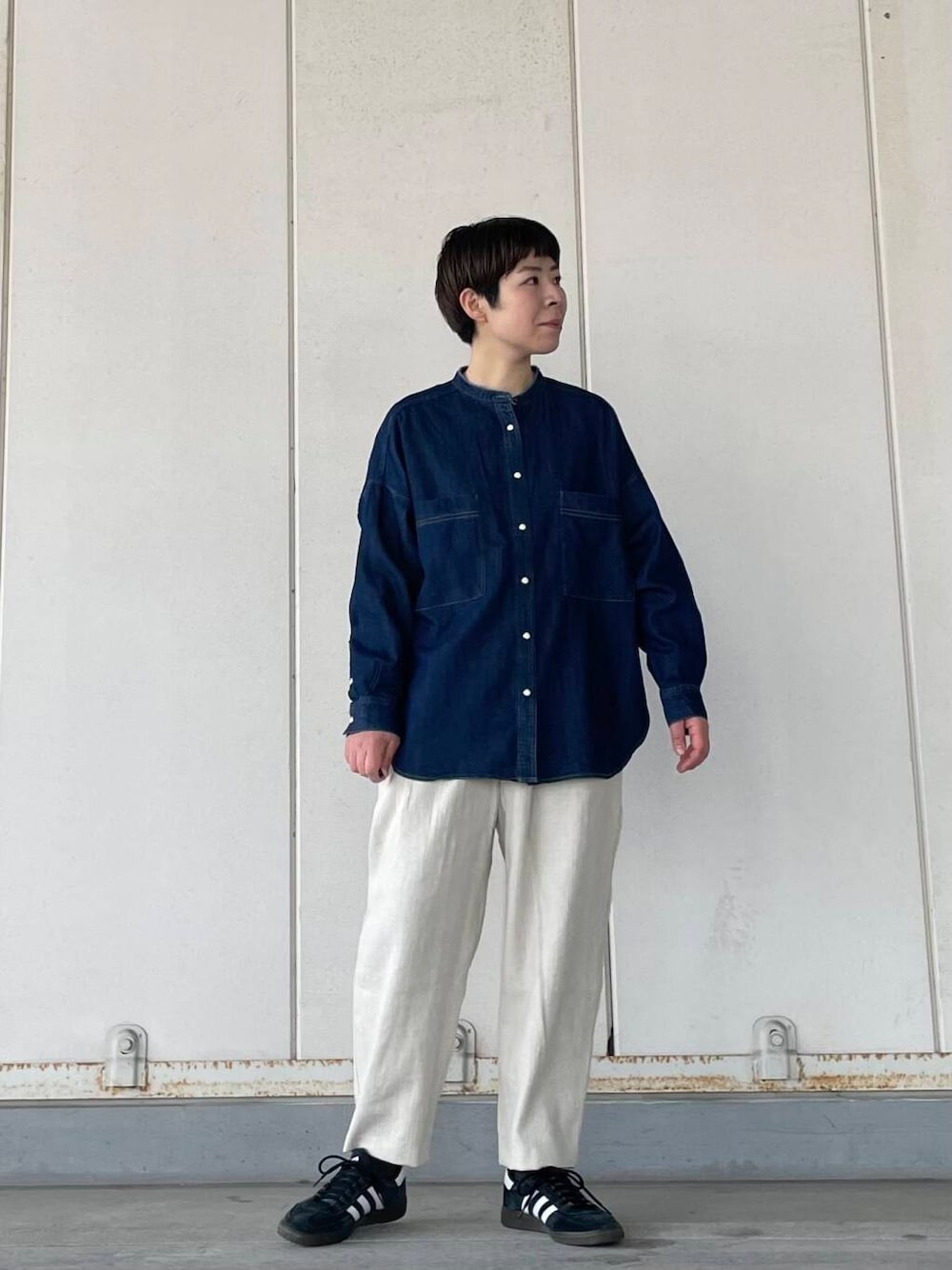 柔らかい生地感で、程良くゆとりのあるシルエットが着やすいです。