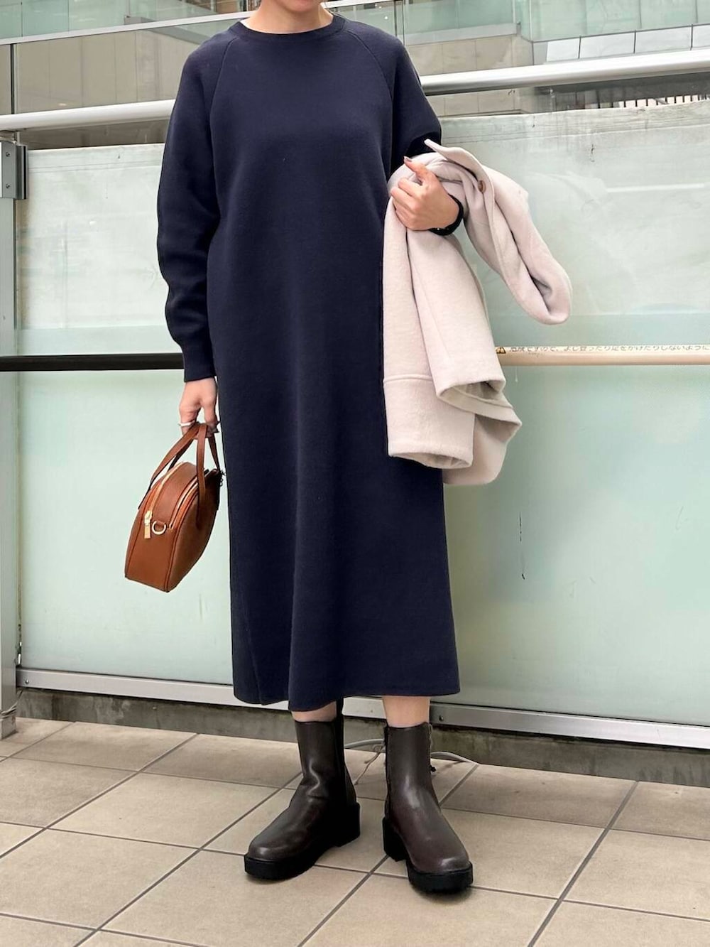 アウターはミドル丈でサッと羽織りやすいものを合わせました。