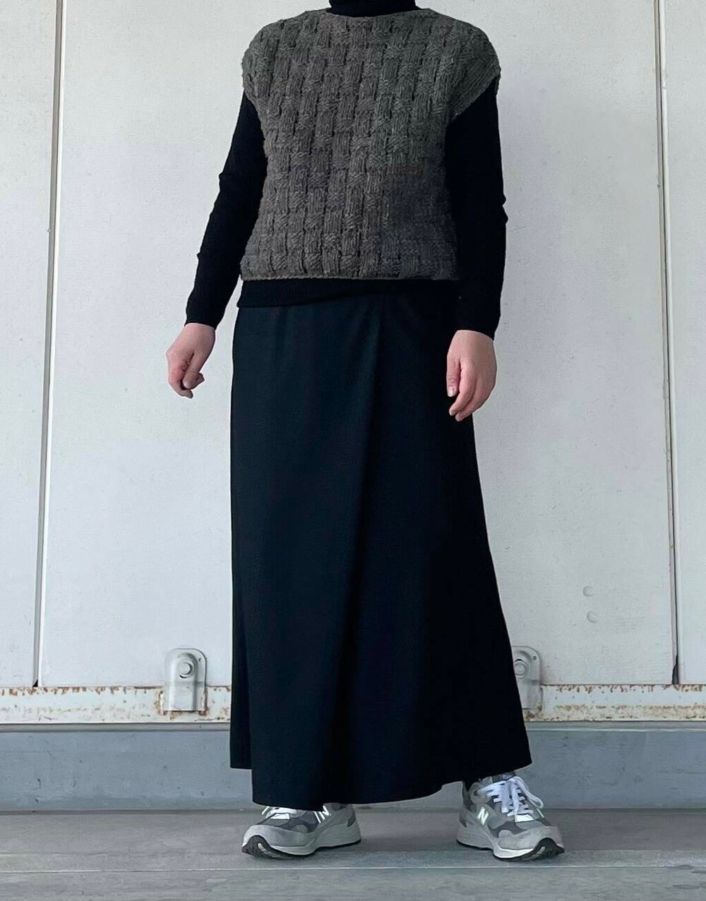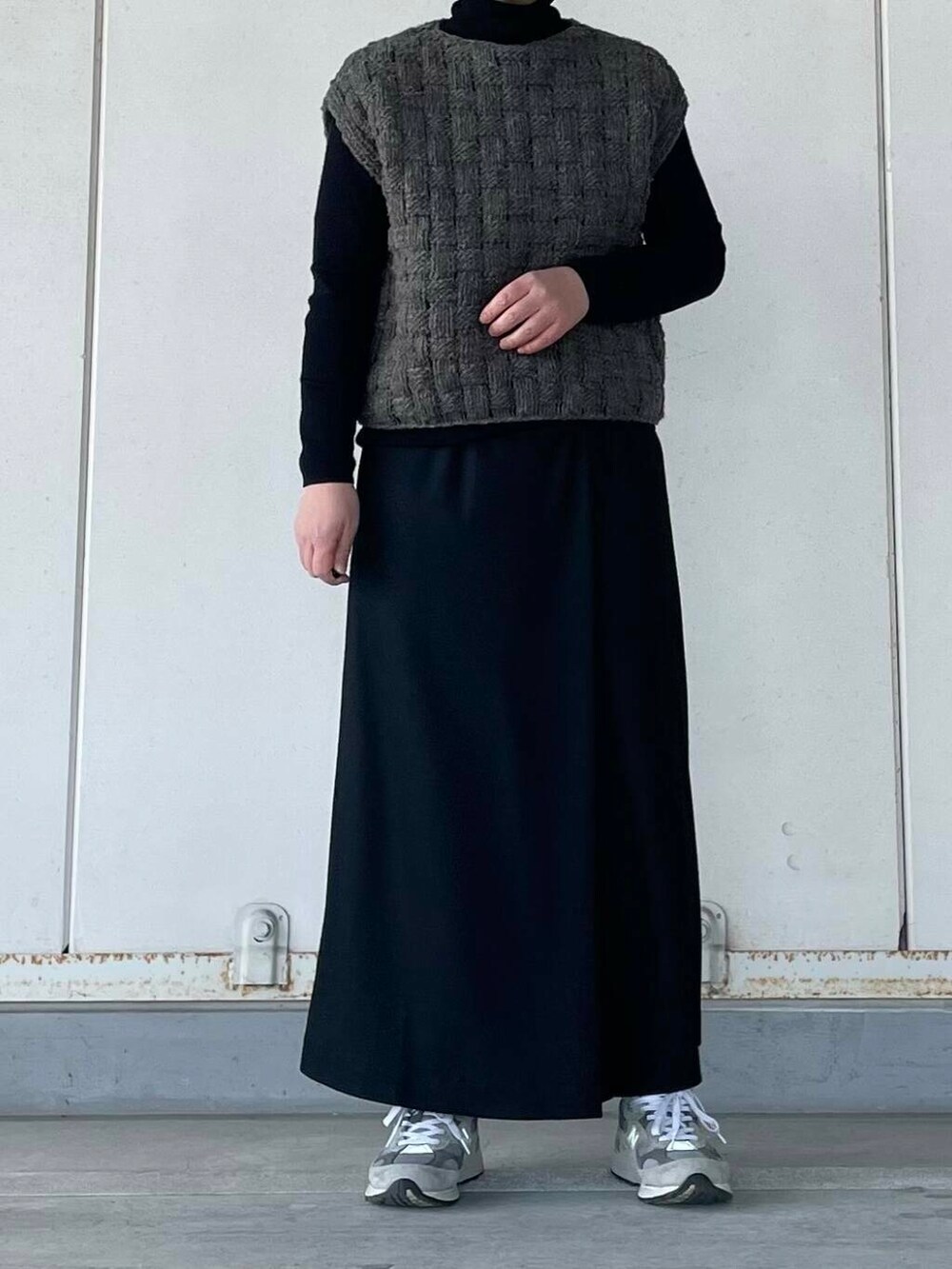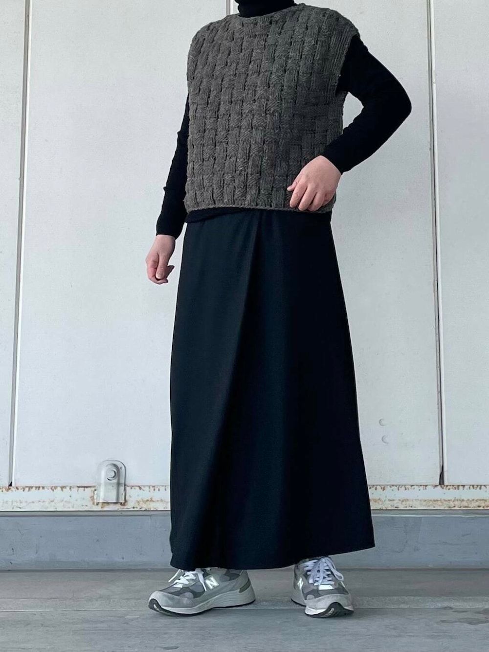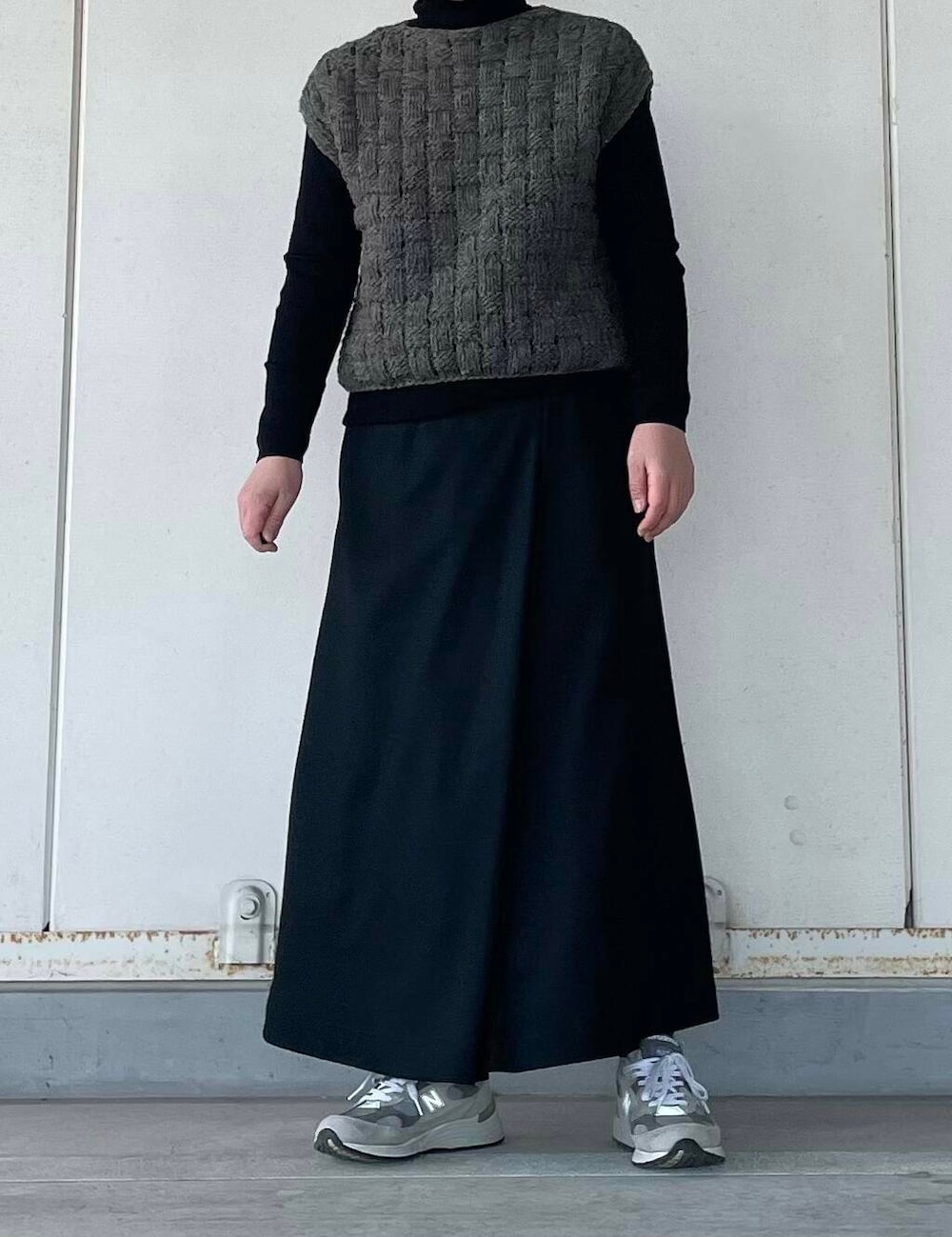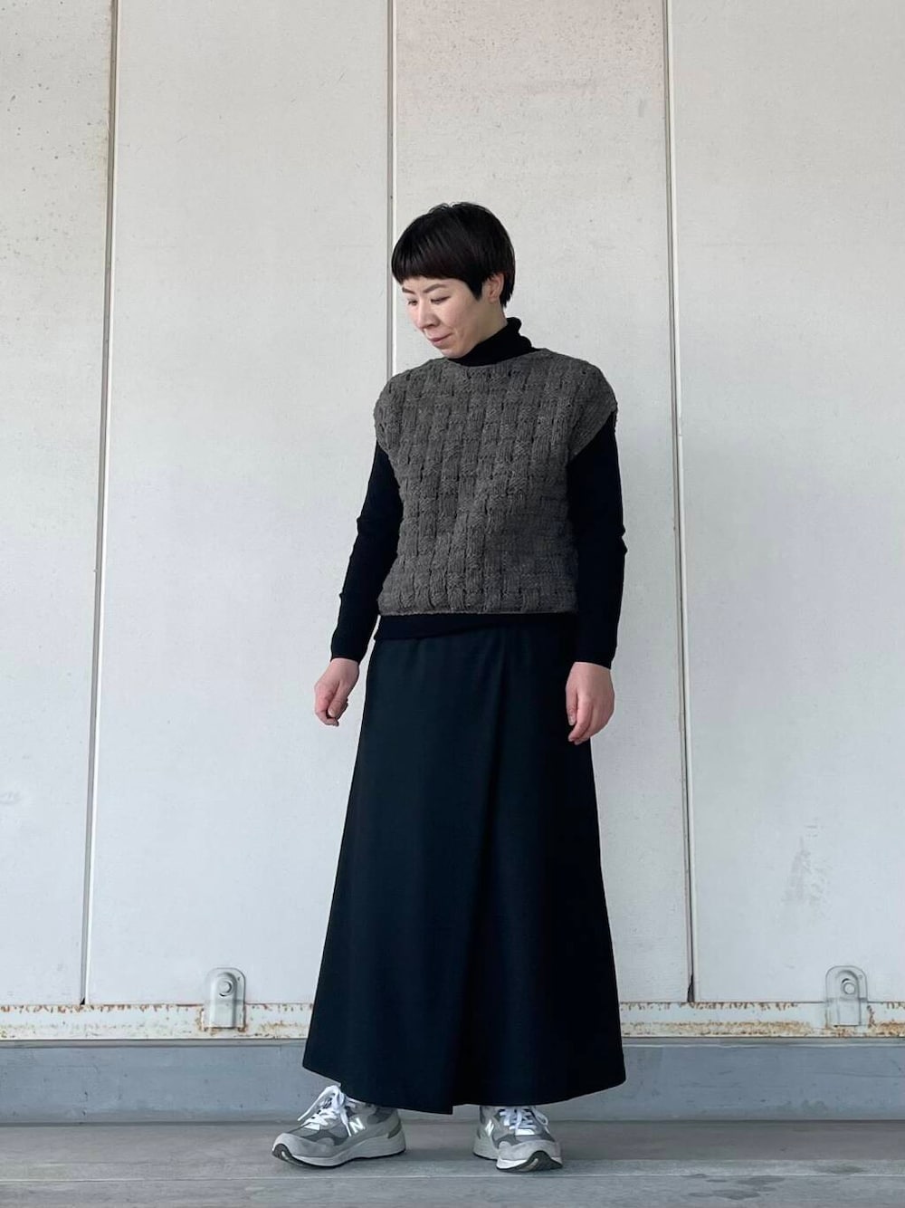 スカートは広がりすぎず、落ち感がきれいです。ブラックはオンオフ問わず活躍しそうです。