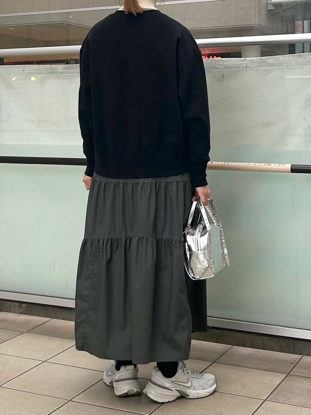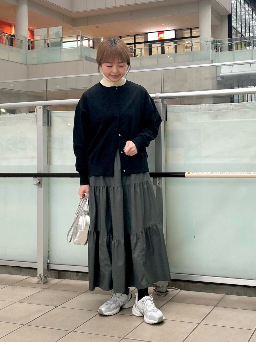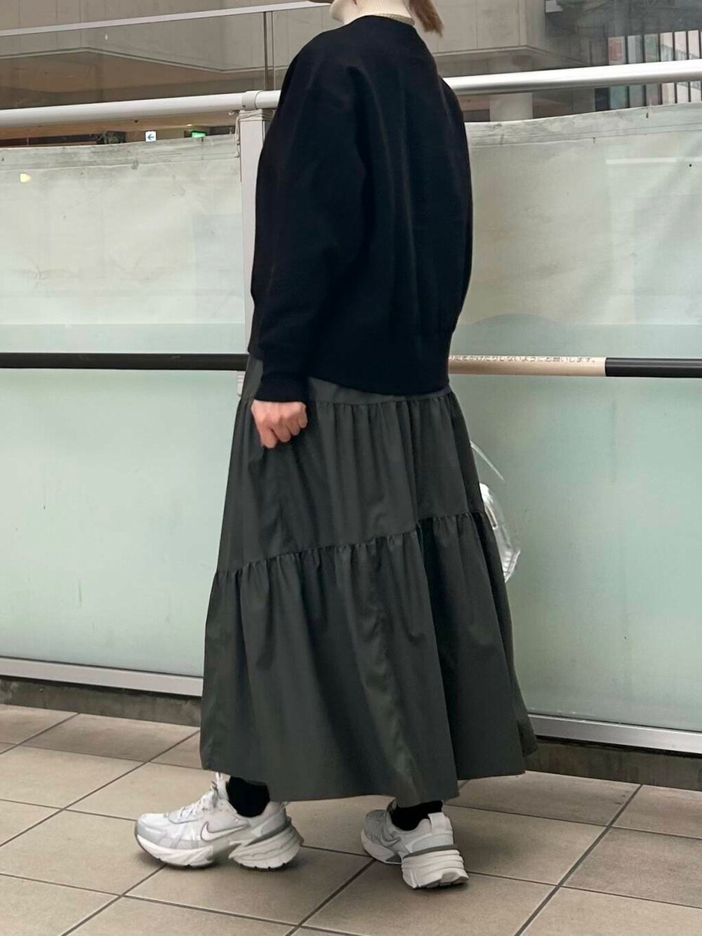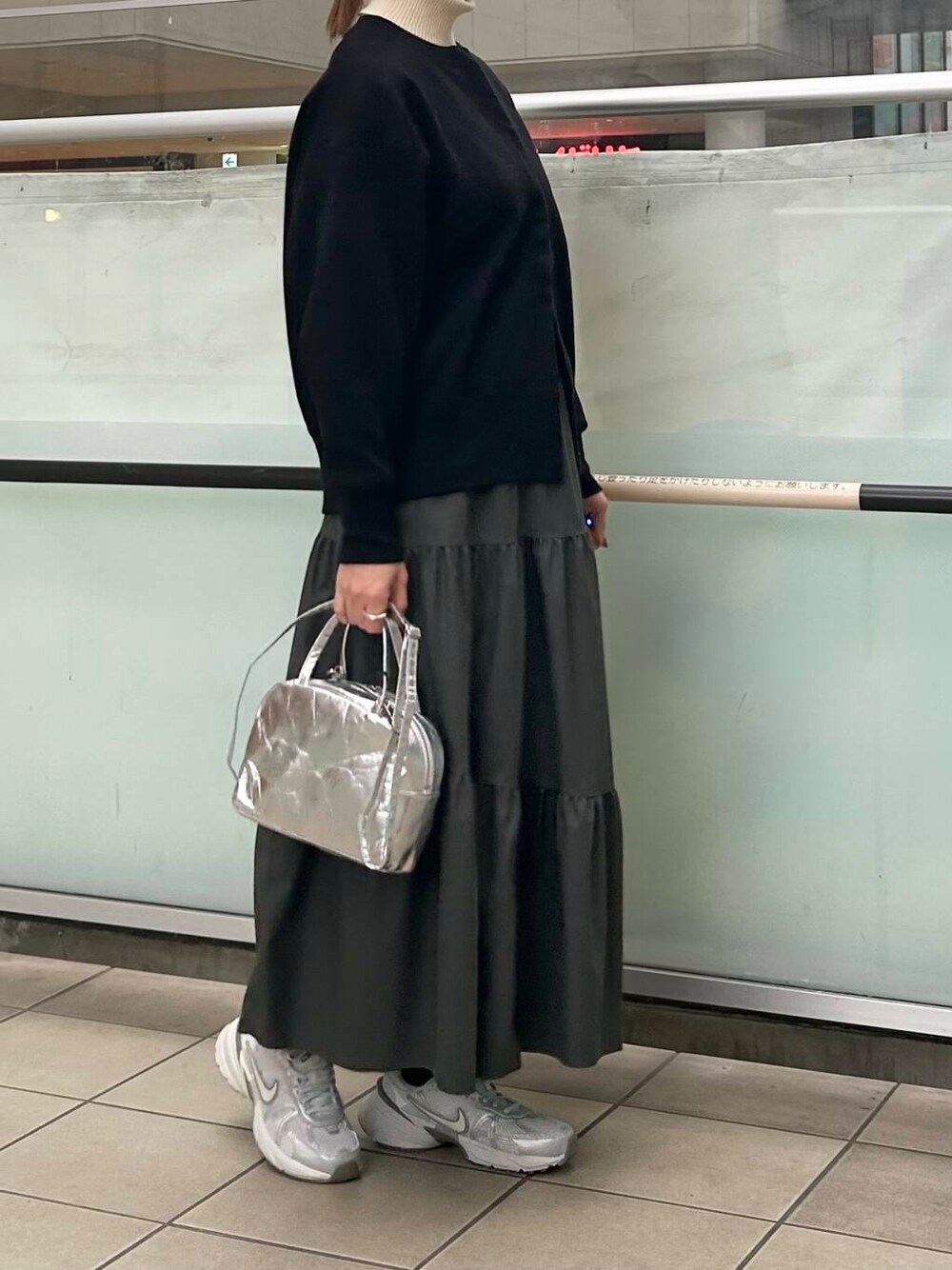 少し甘めのデザインなのでトップスは黒を合わせました。