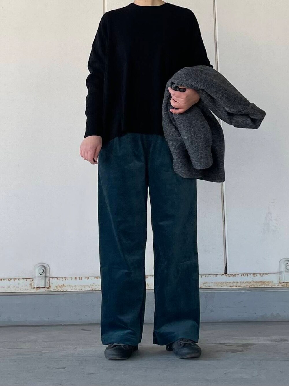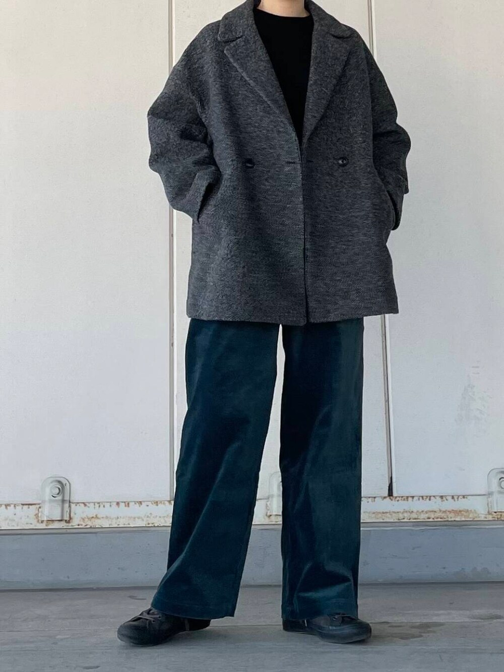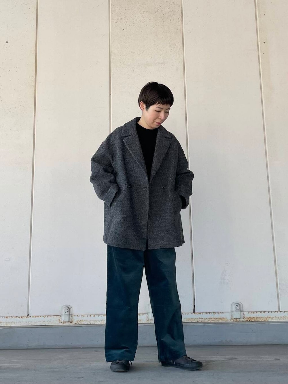 アウターは裏地付きで軽くて羽織りやすいです。程よくゆとりのあるサイズ感は、中にも着こみやすく、ごわつきなく着られます。