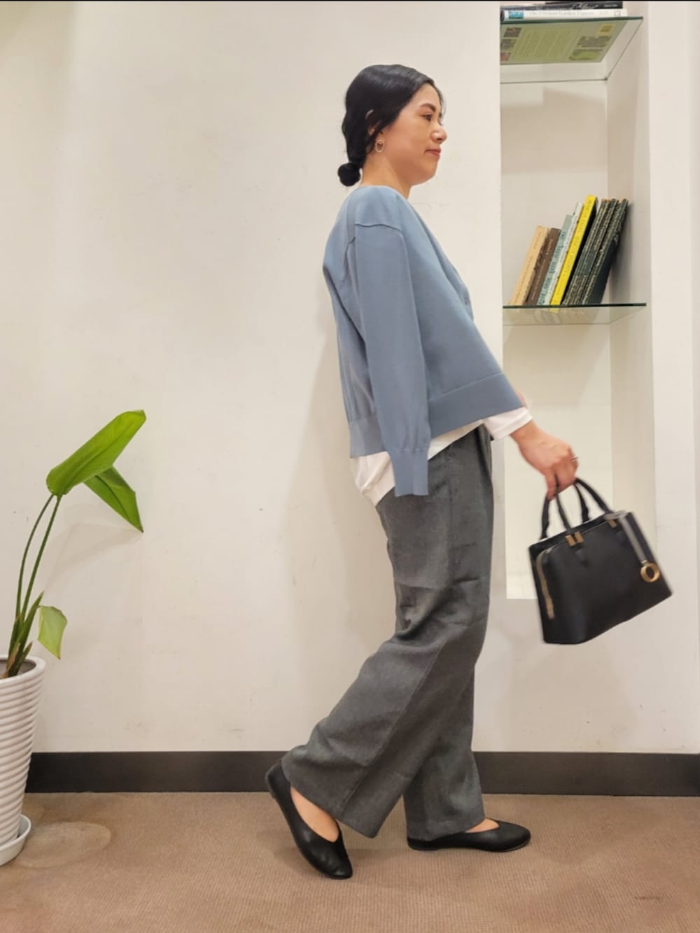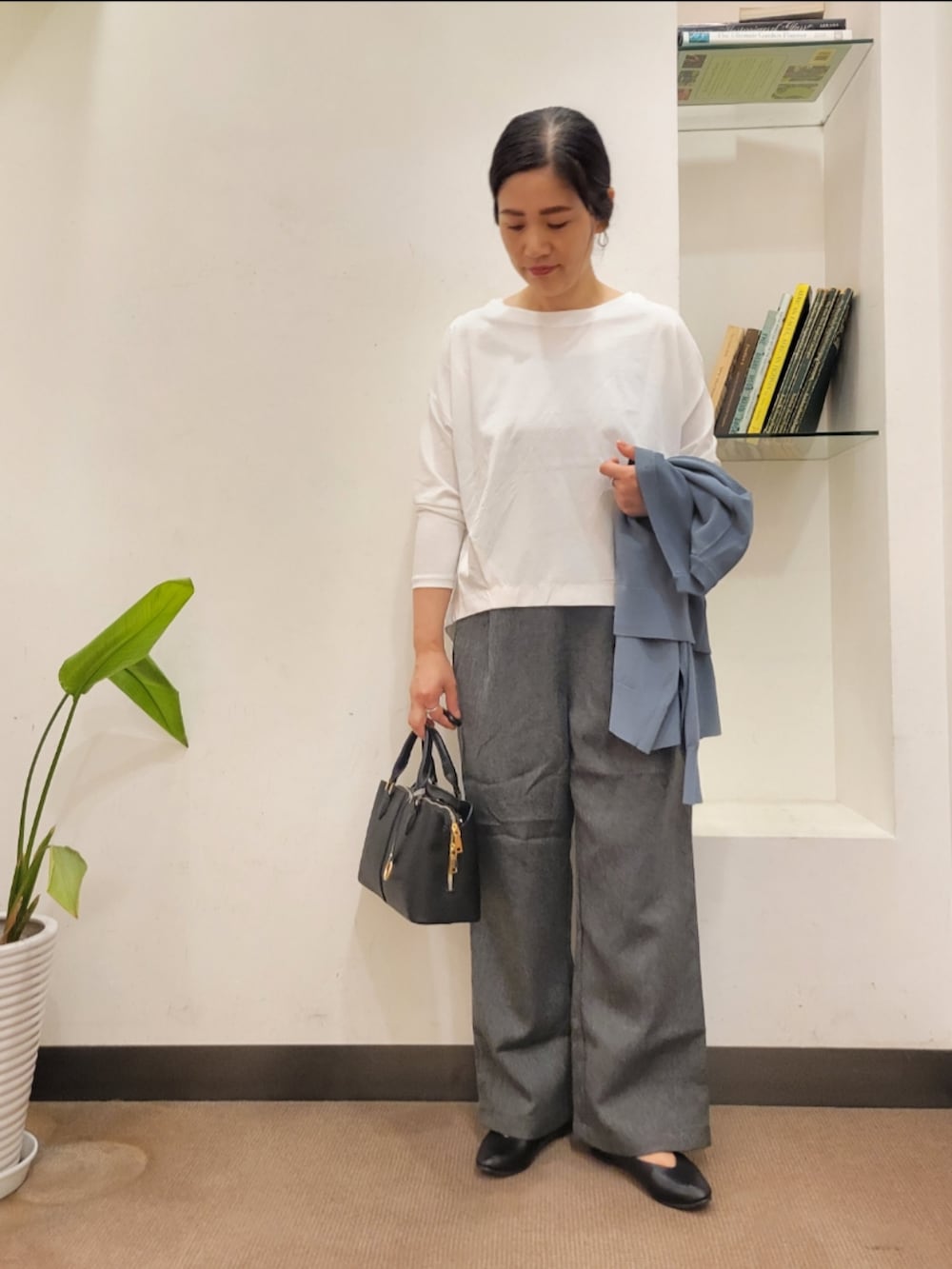 雰囲気でる生地感でシンプルコーデの