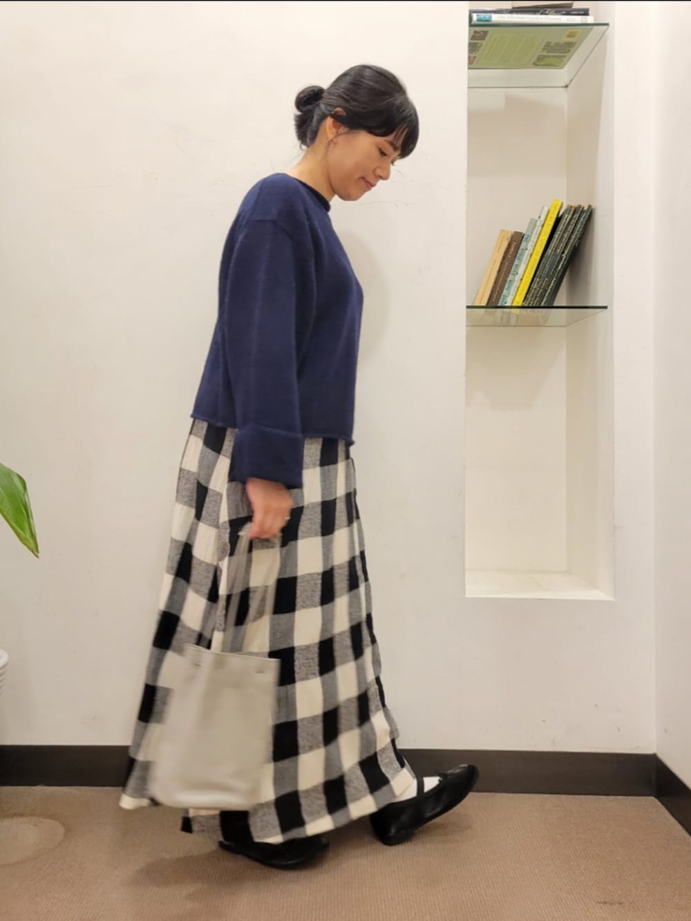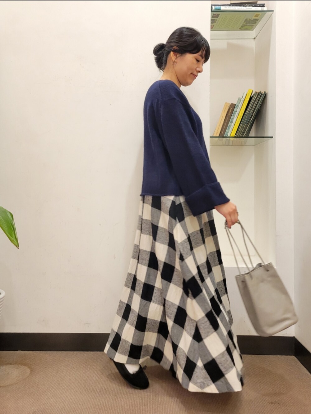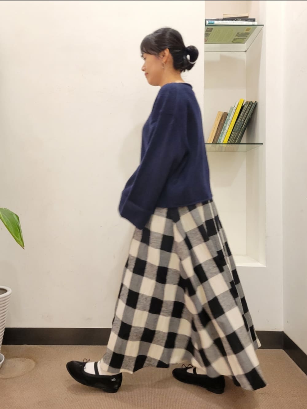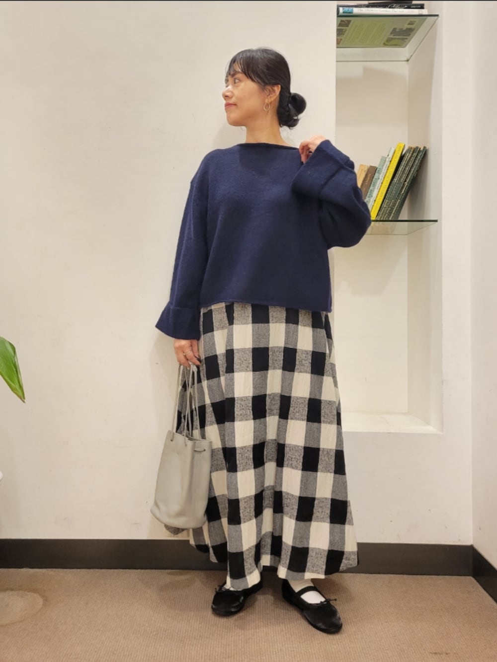 チェックがかわいくコーデのポイントに◎