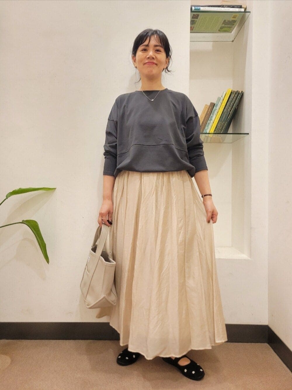 スカートはウエストゴムで楽です。