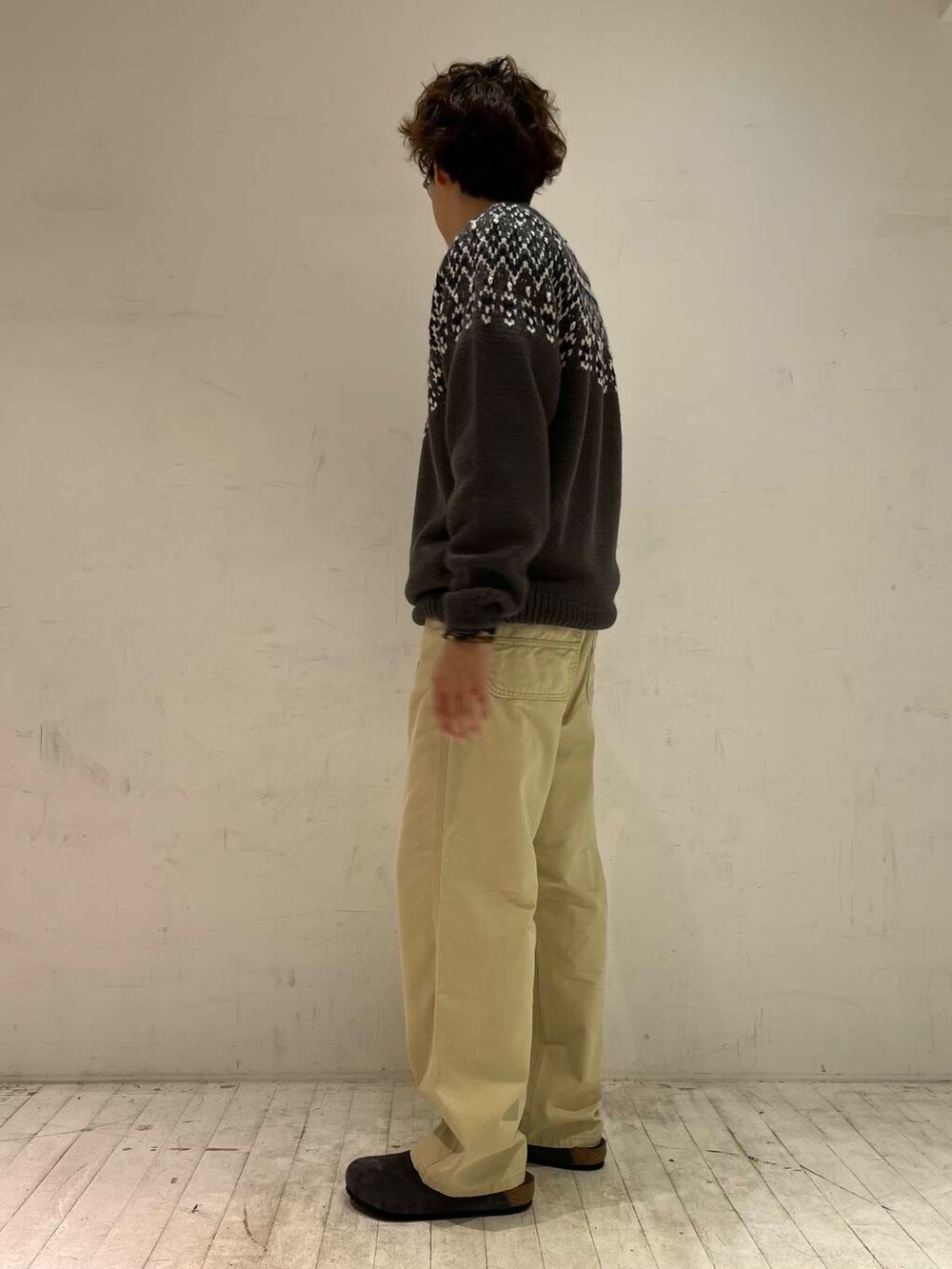一枚で主役になる求心柄のニットに、カジュアルなストレートパンツを合わせてみました🧶