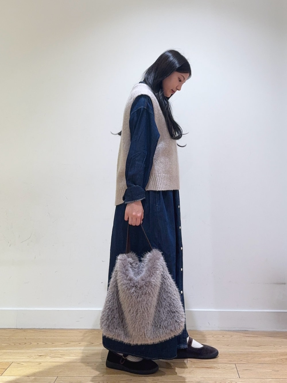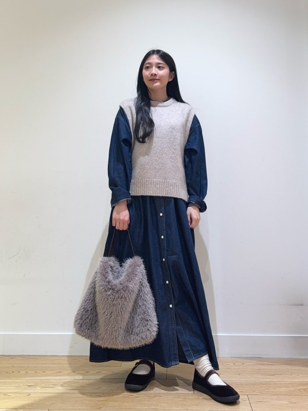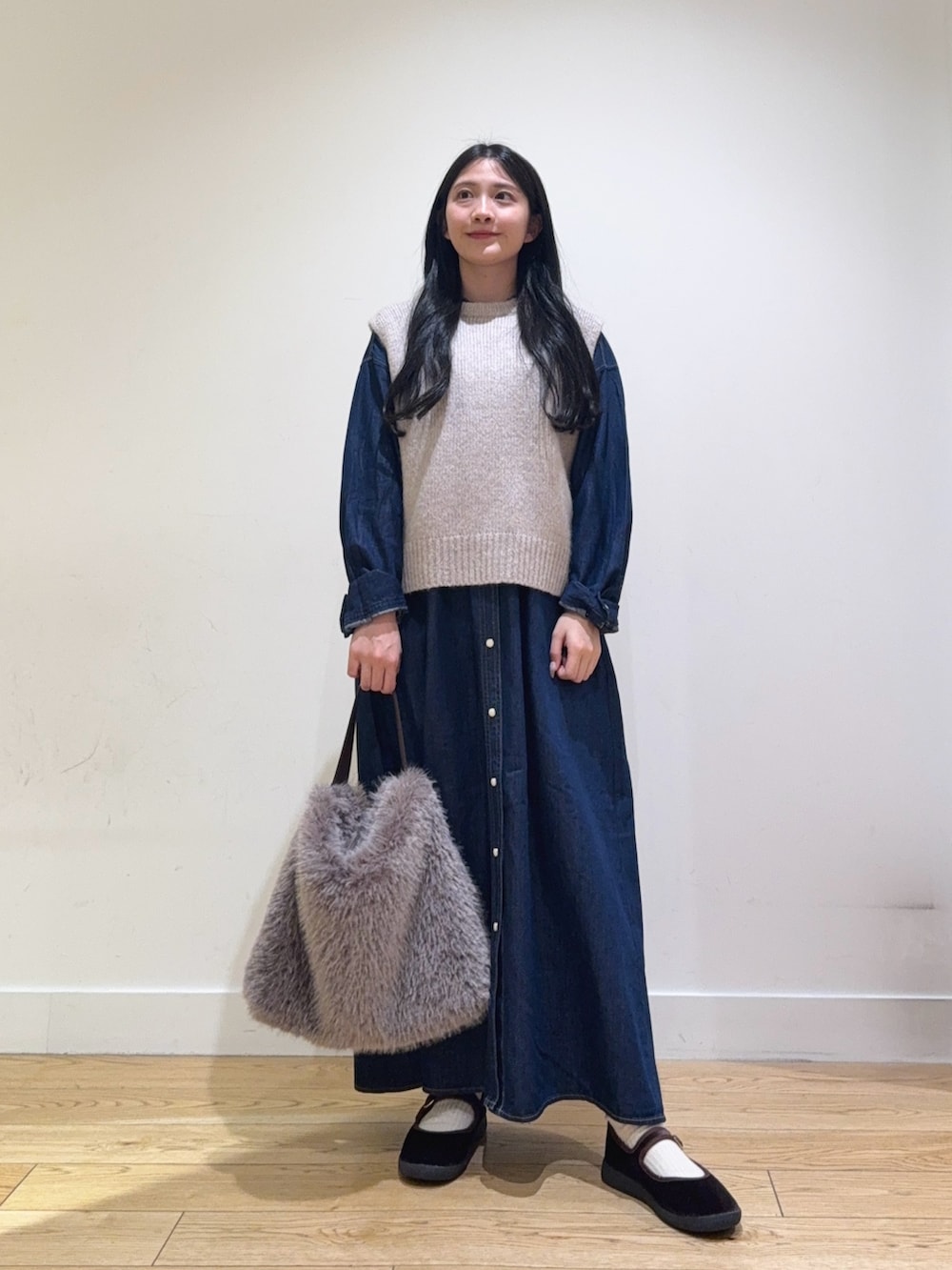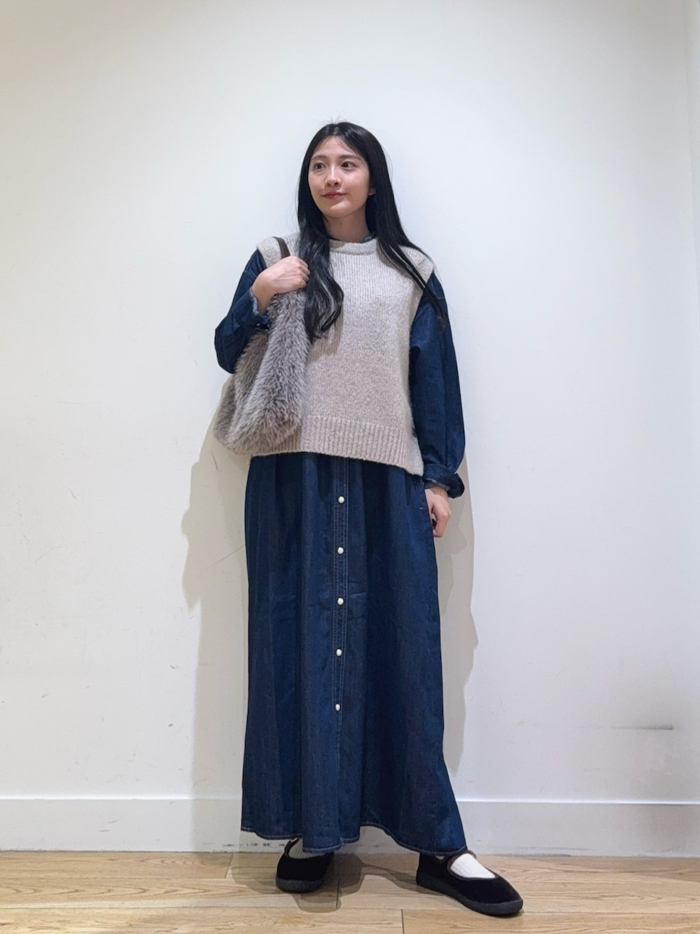 デニムバンドカラーワンピースは、人気のシャツのワンピースバージョンで1枚でもパンツと合わせてもかわいいです!