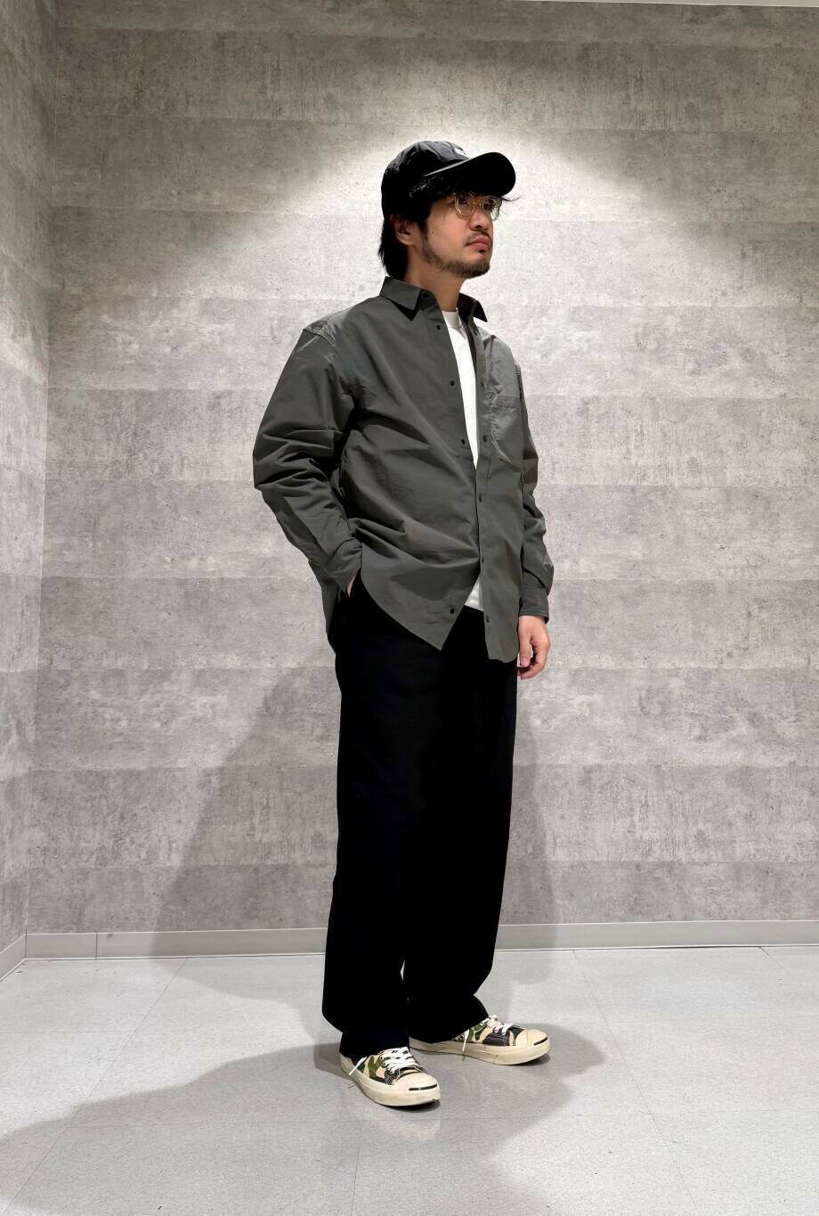 シャツはEKAL定番のナイロンタッサー生地で大人気シリーズ。