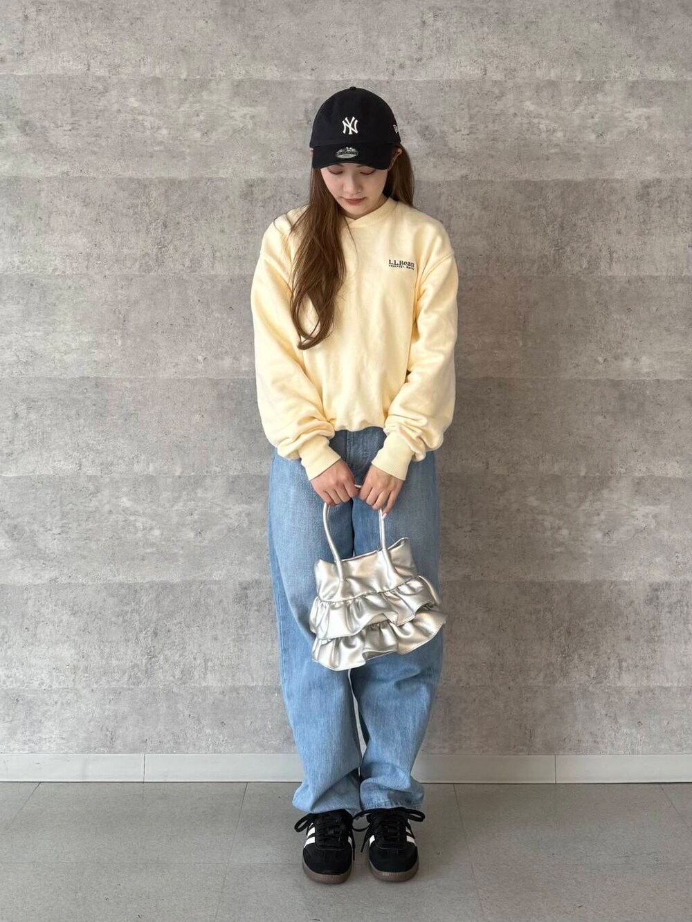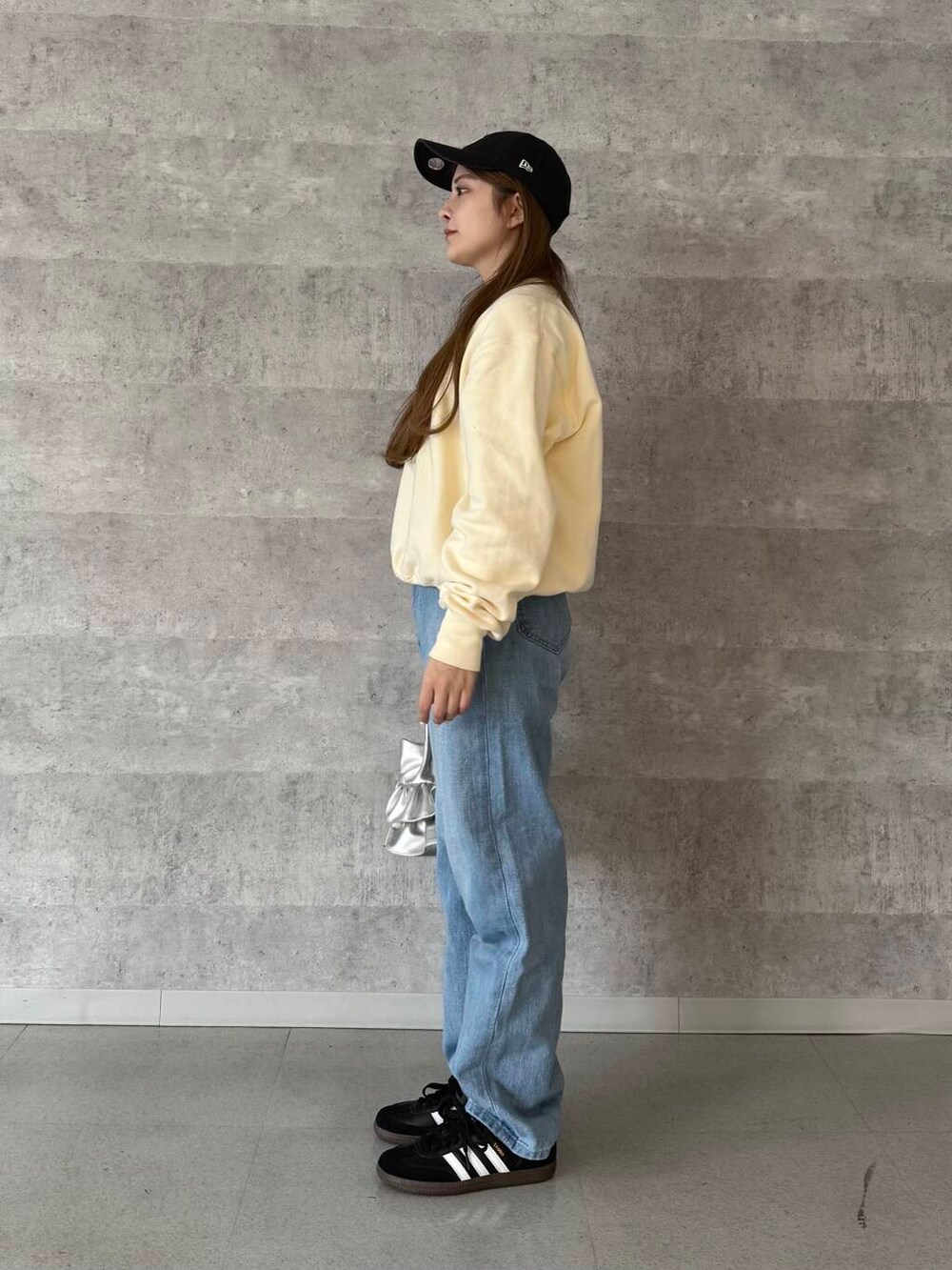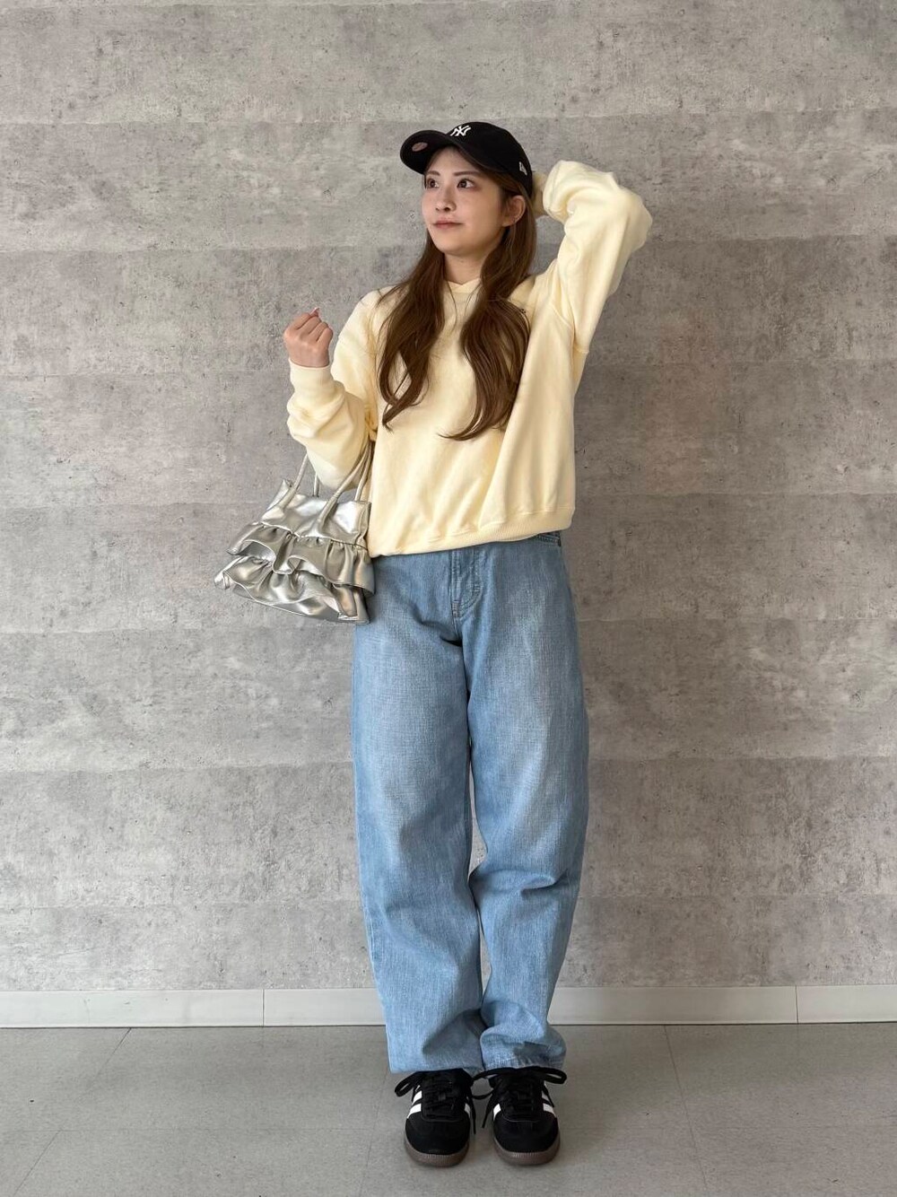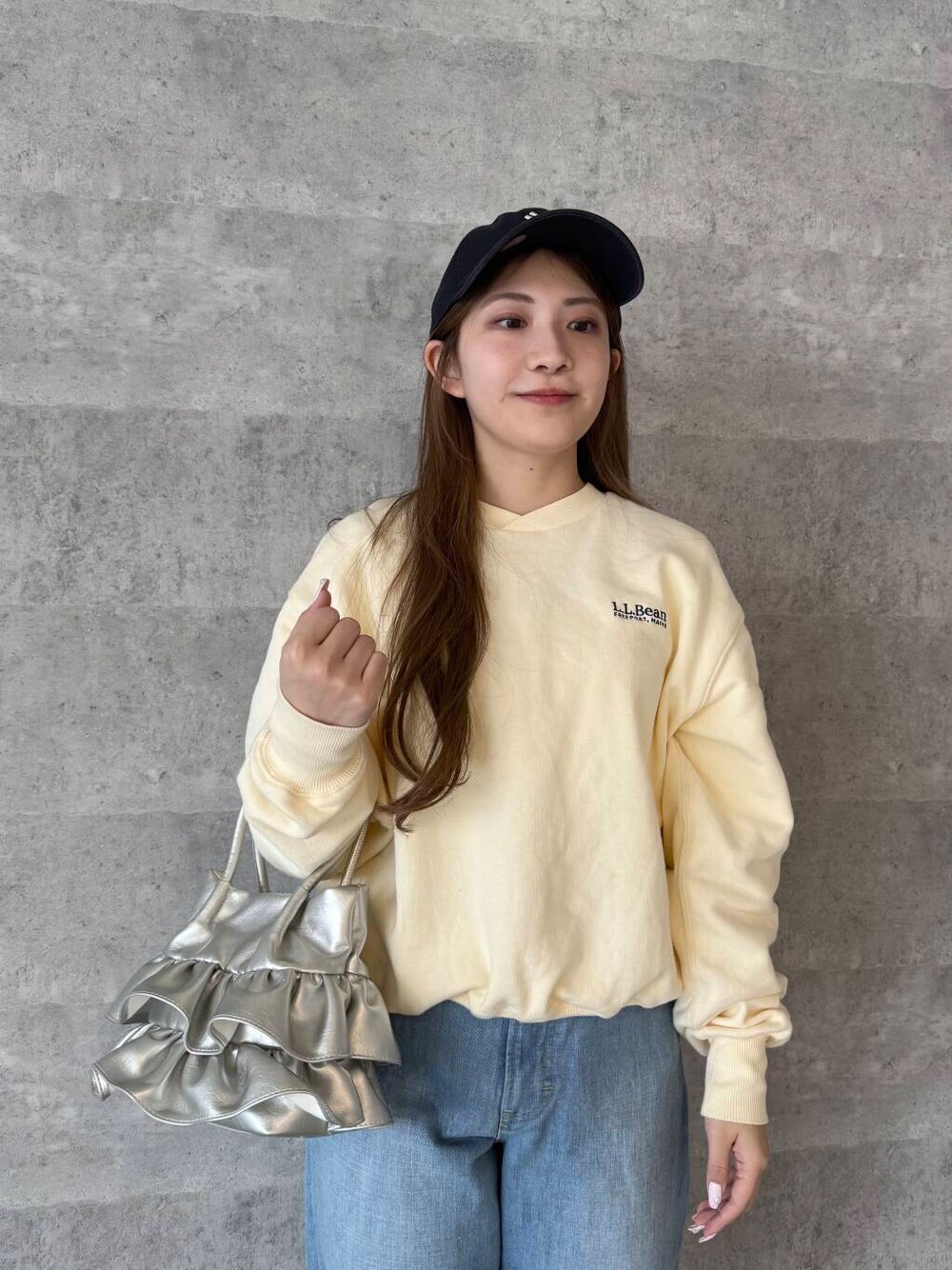 L.L.Beanのスウェットは、春らしい優しい黄色で1枚持っておけば着回しが効くのでおすすめです!