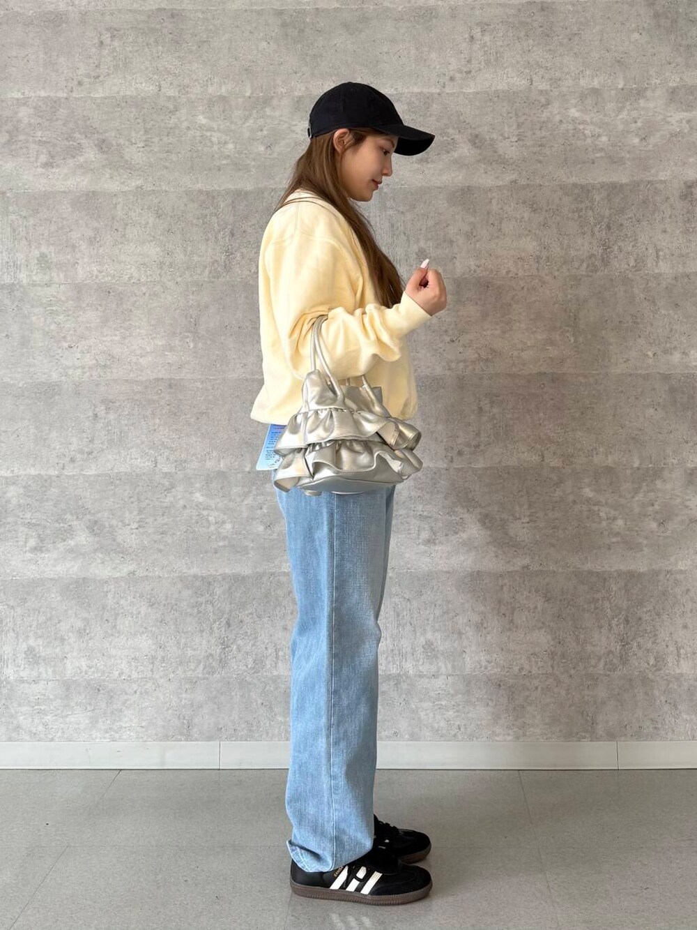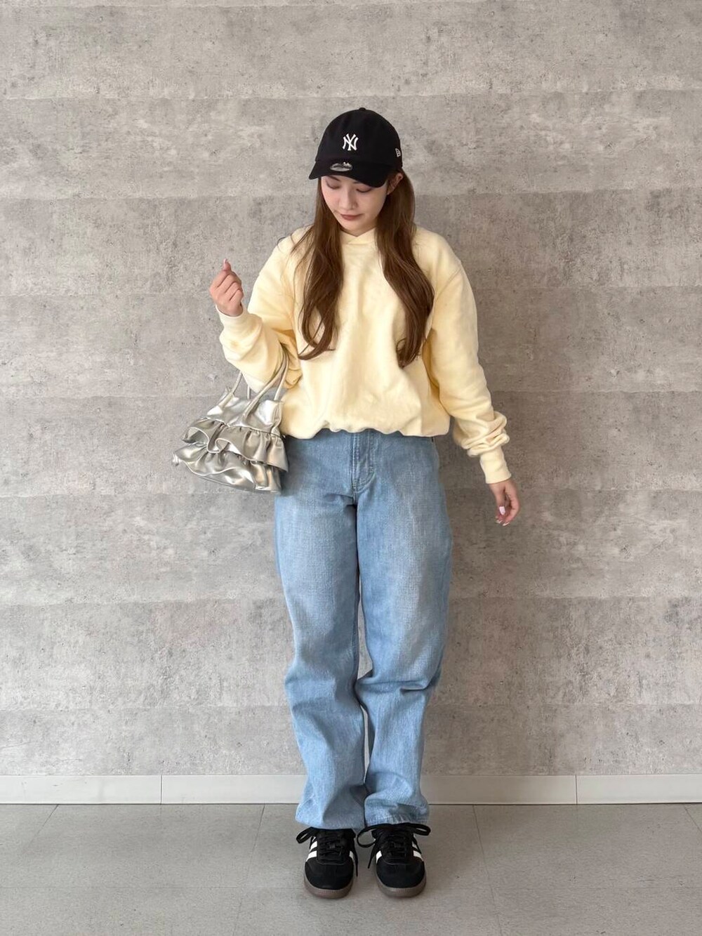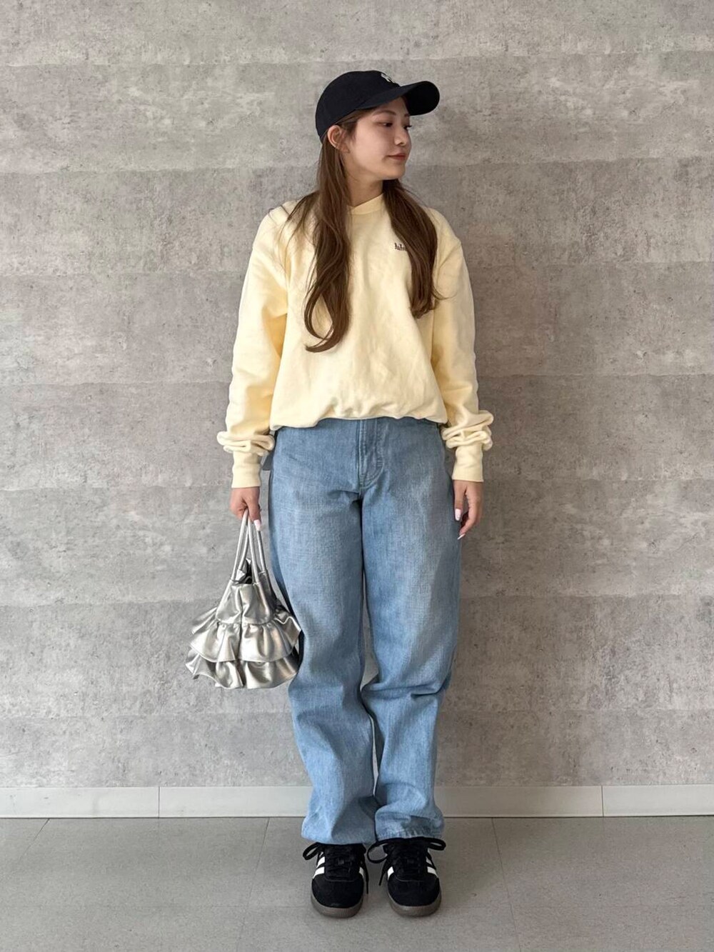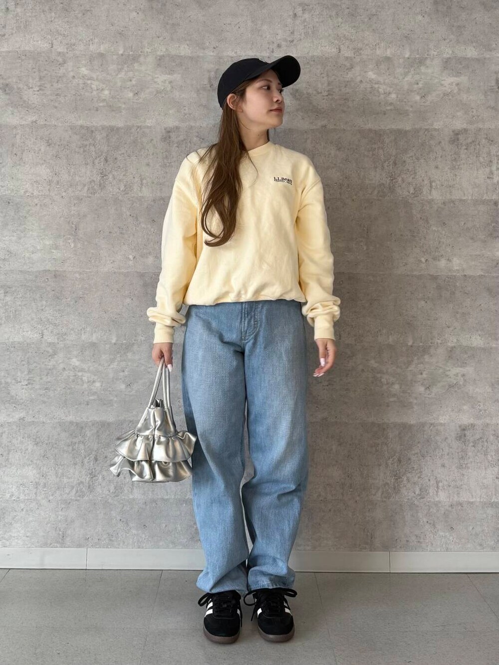 L.L.Beanのスウェットは、春らしい優しい黄色で1枚持っておけば着回しが効くのでおすすめです!