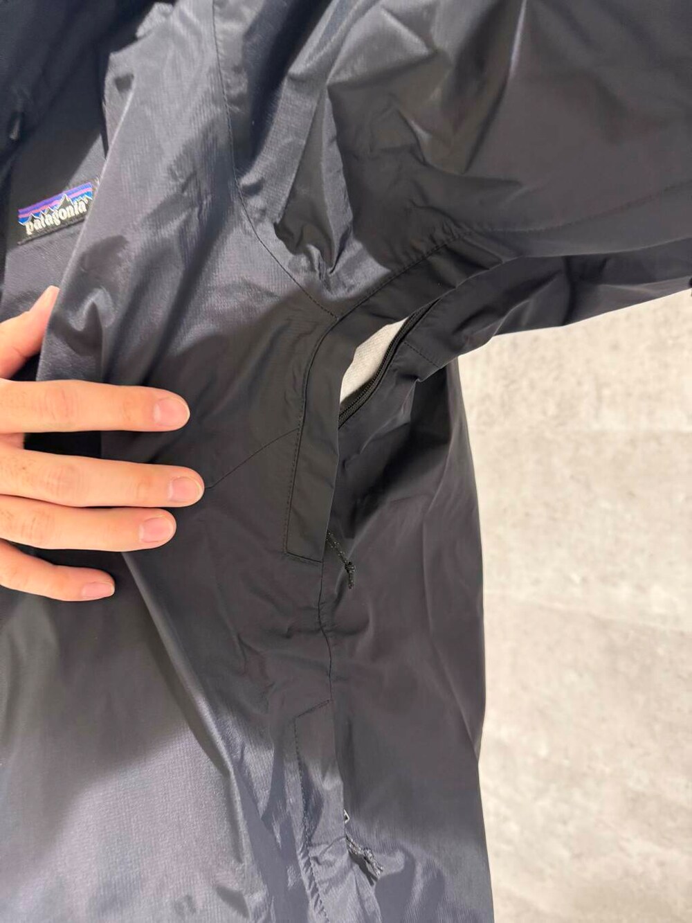脇の下のジッパー(ベンチレーション)を開けると温度調節もできたり、アウトドアブランドならではの機能性がたっぷり。