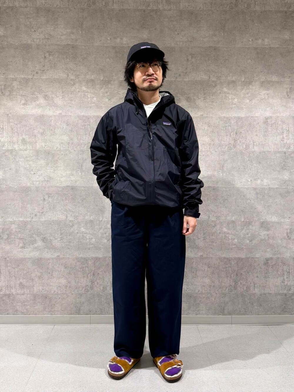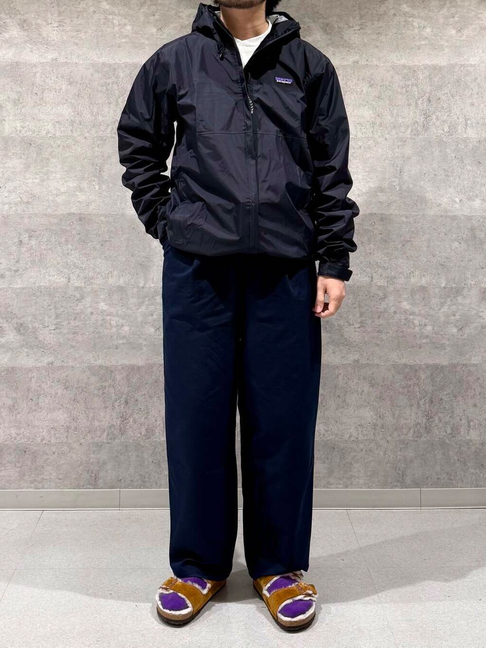 パタゴニアのトレントシェルジャケットをメインにコーディネート。