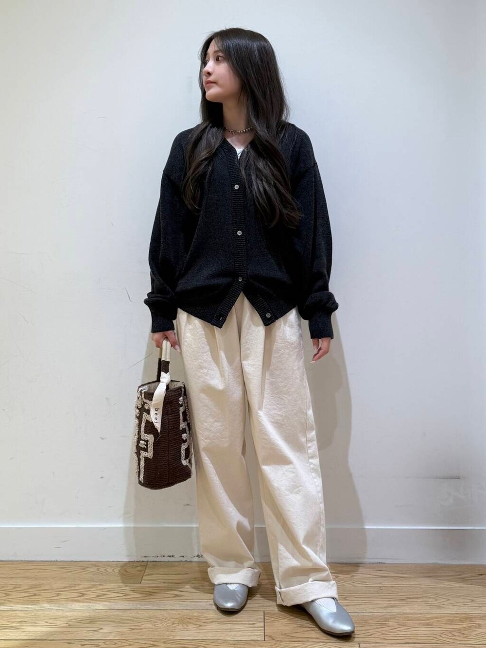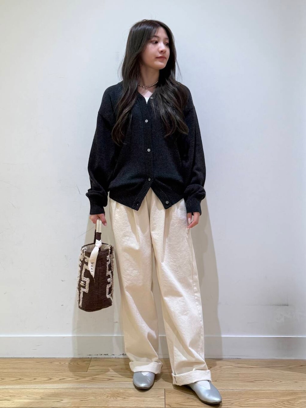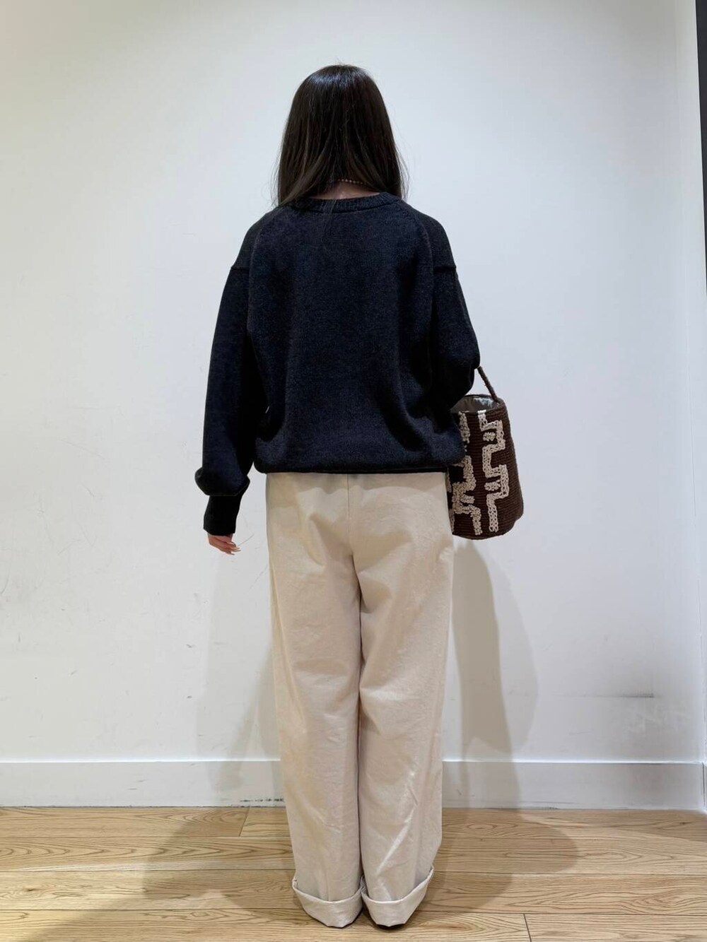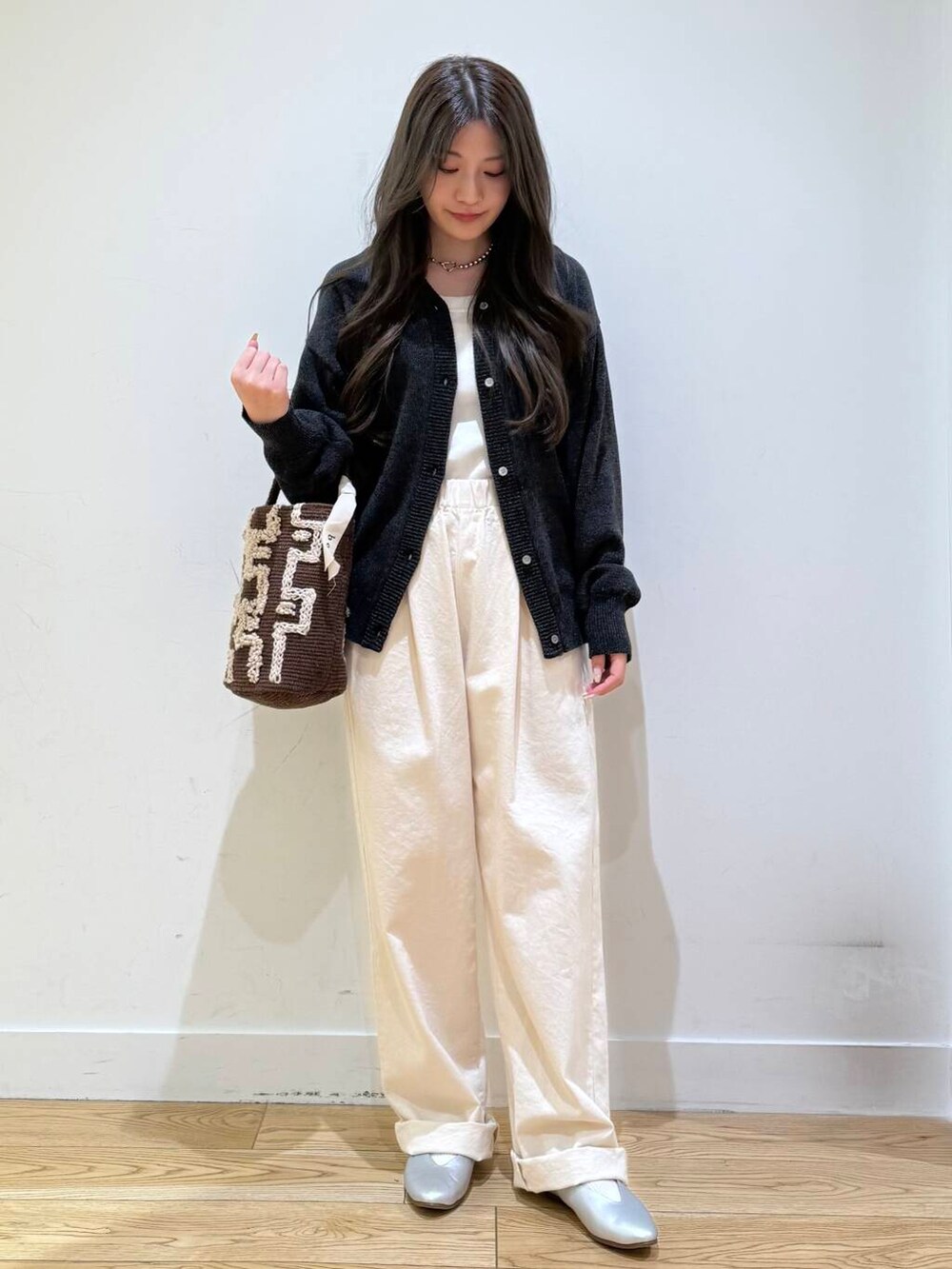 コットンデニムイージーパンツは、裾を折ってもきれいに着れるので低身長の方にもおすすめです!