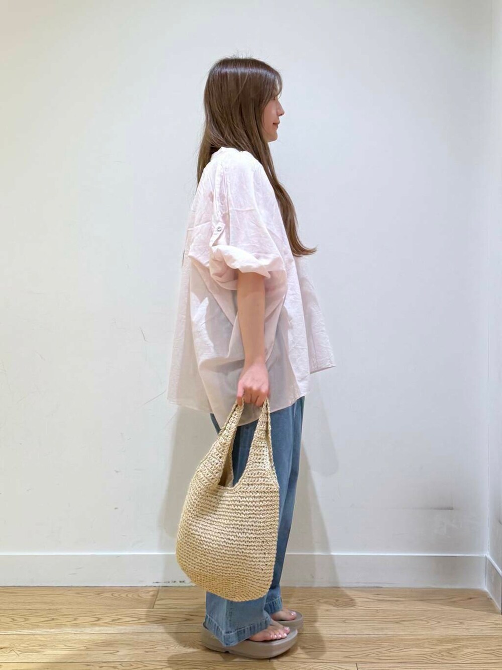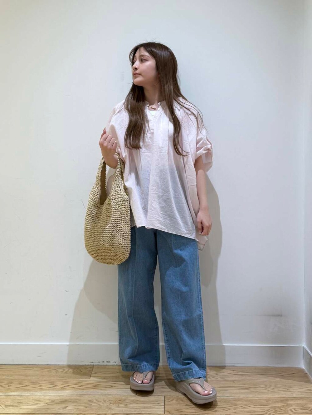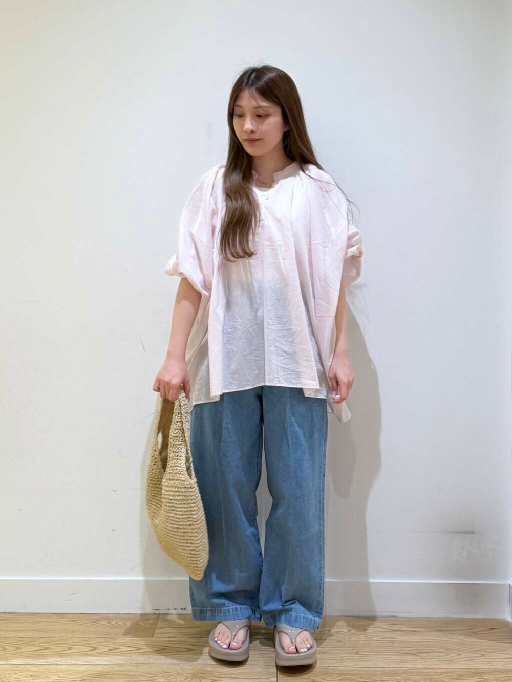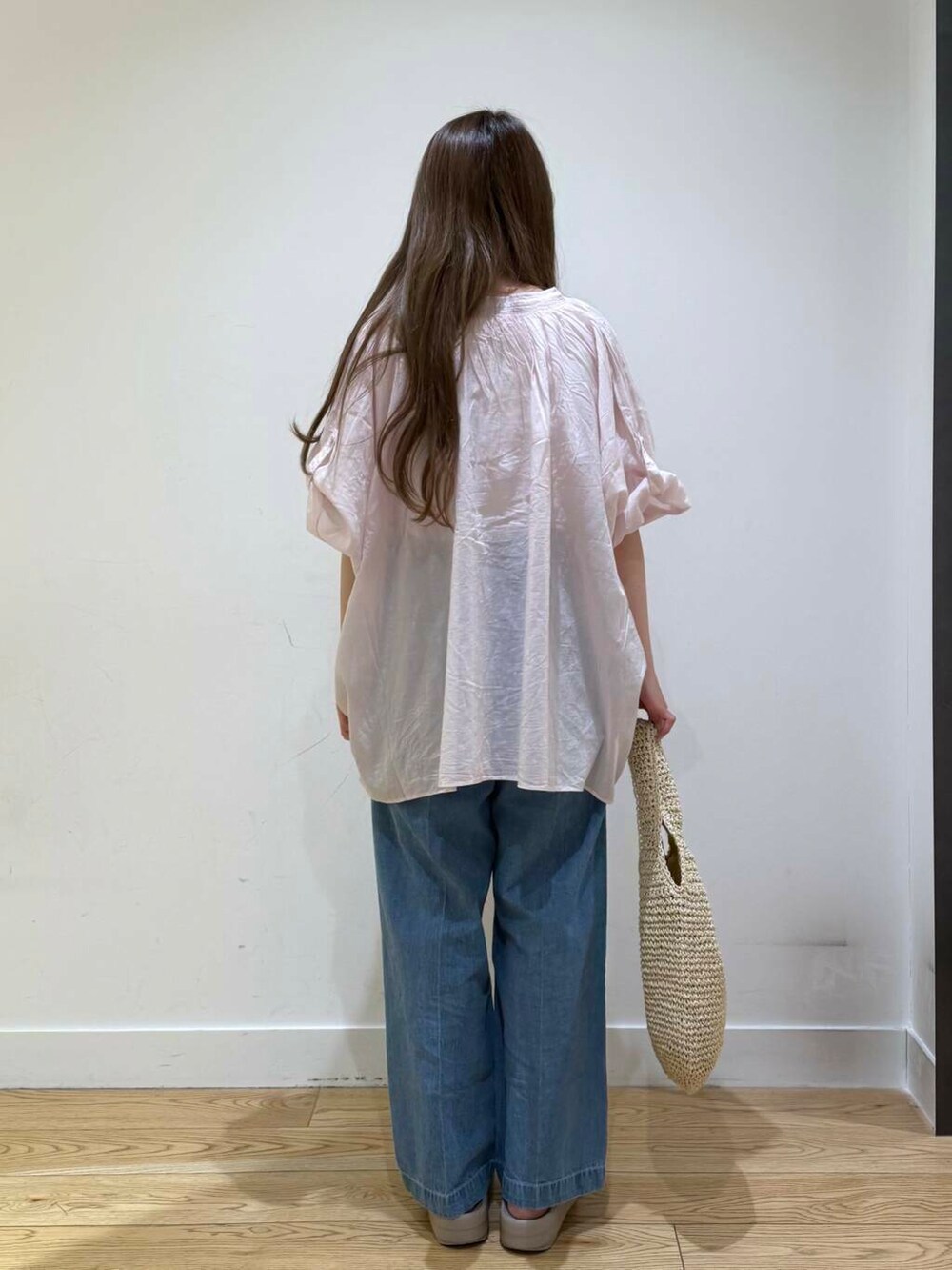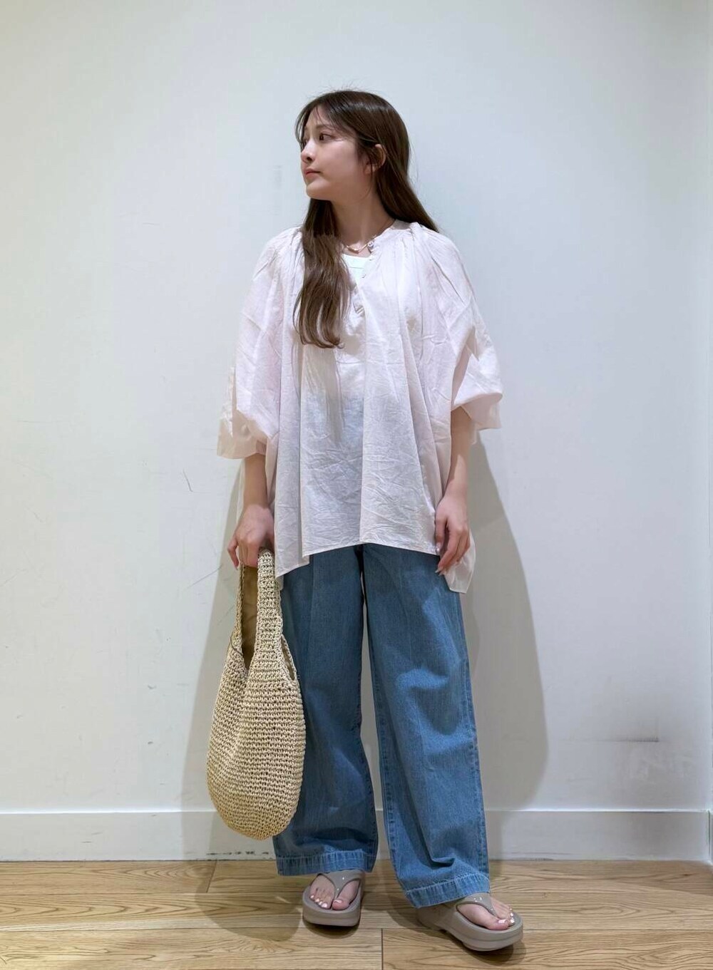 コットンボイルロールアップスリーブブラウスは、肌馴染みの良いピンク色で袖をロールアップしてもしなくてもかわいいです!