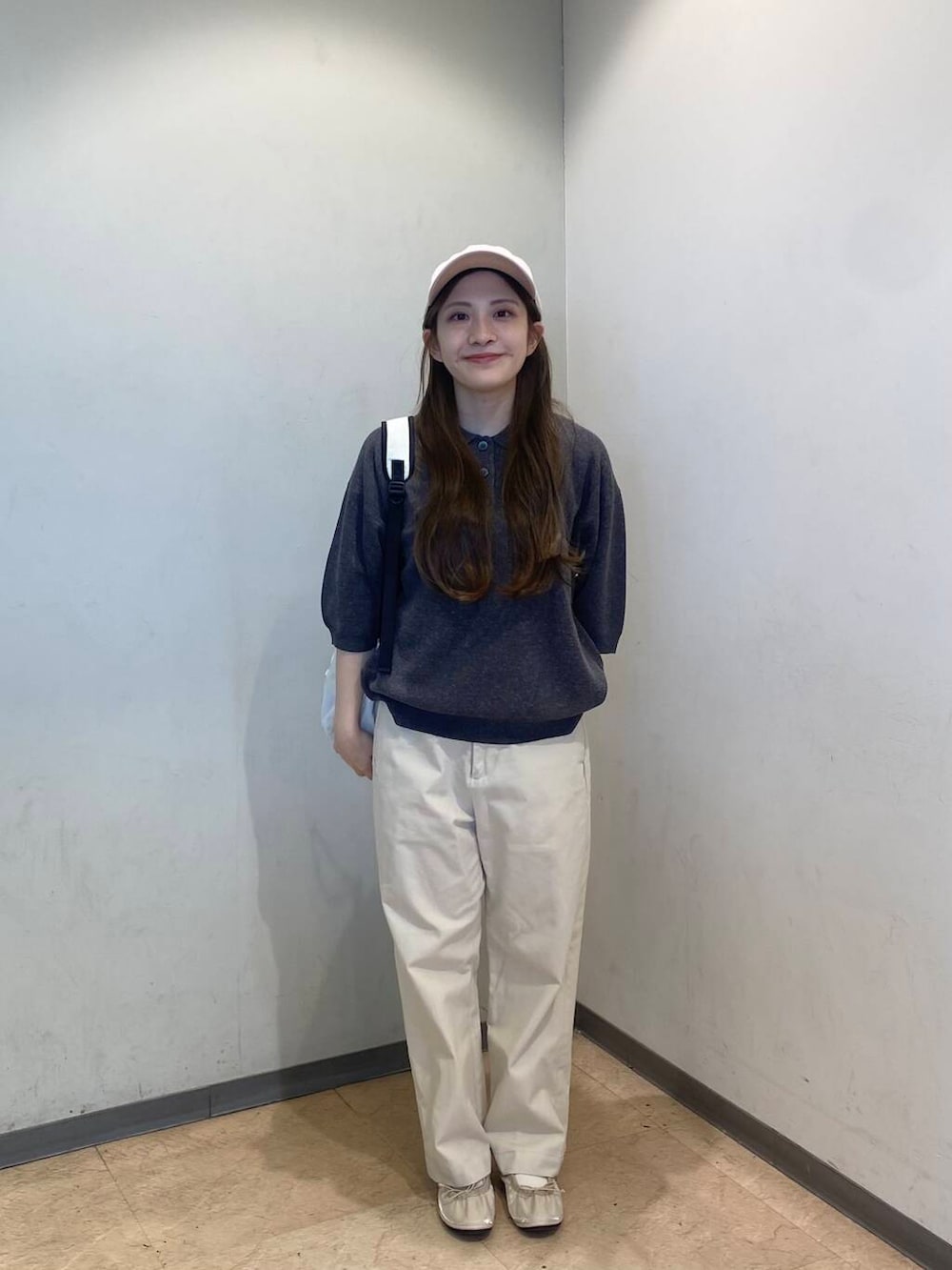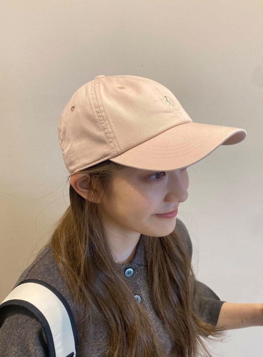 ベビーピンクのキャップはチャコール系のカラーととても相性が良いです!つばも程良く長いので日差しからしっかり守ってくれます!