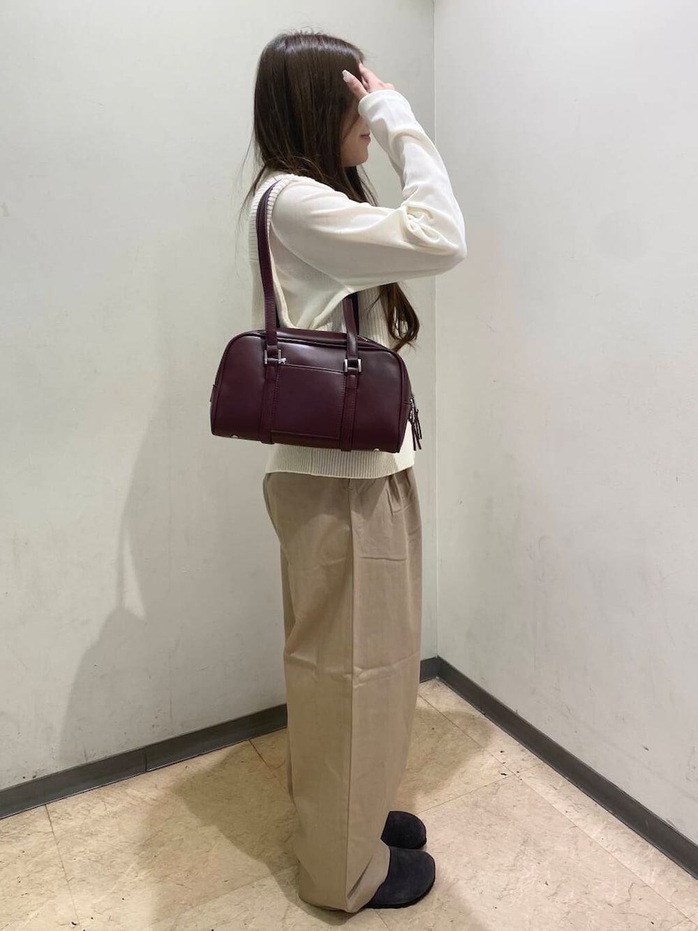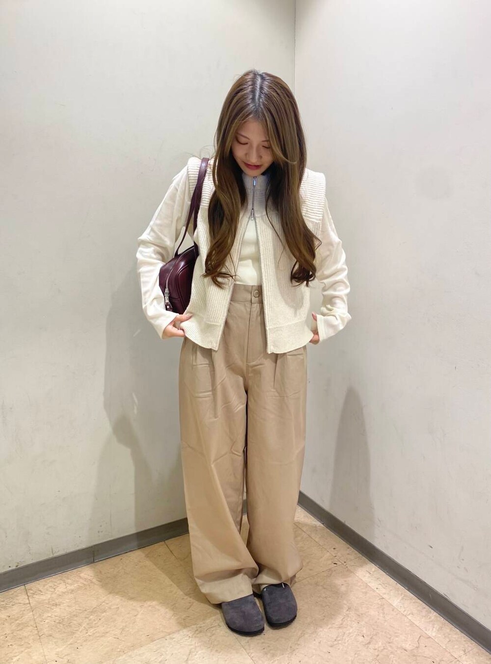 本日は、ニットベストを使ったコーディネートにしました!Wジップになっているので色々な着方ができます!