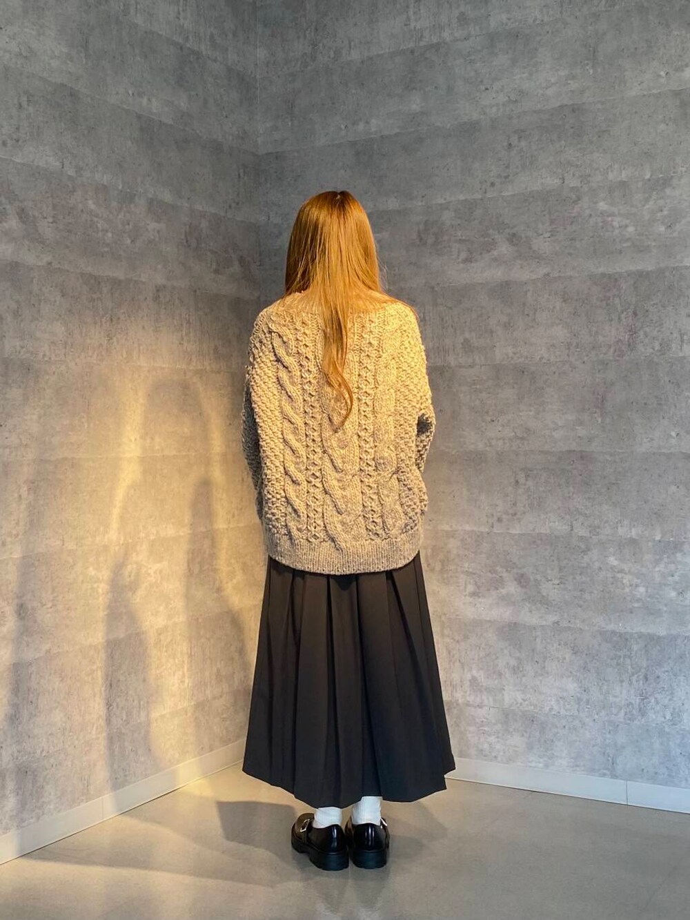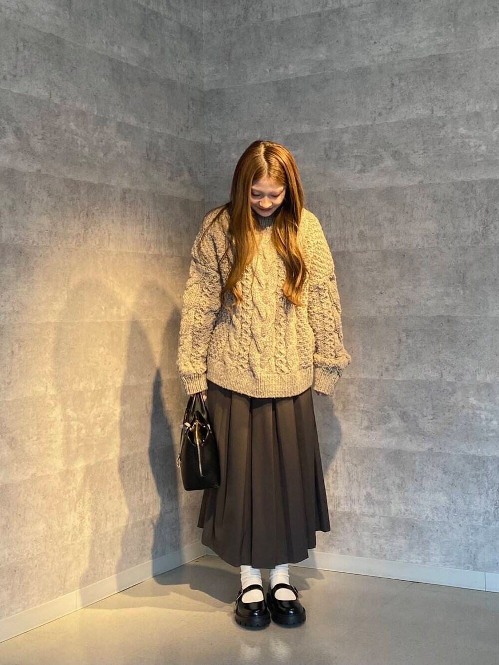 プリーツスカートはプリーツの幅が広くてきれいです!絶妙なチャコールカラーが秋にぴったりでかわいいです!